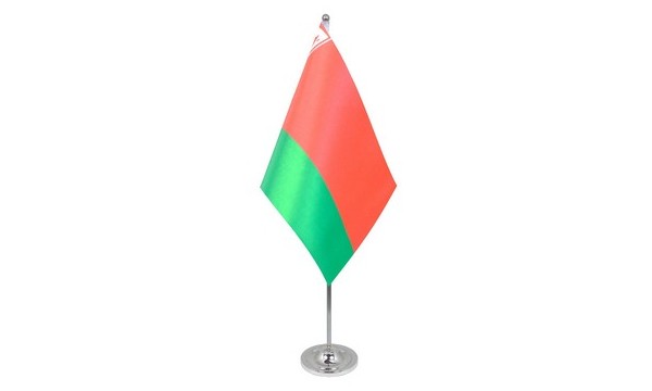The Belarus Satin Table Flag proudly features the red and green colors of Belarusà¢àâ¬àâ¢s national flag, with a traditional ornamental pattern along the hoist. The red symbolizes the courage and bravery of the Belarusian people, while the green represents the countryà¢àâ¬àâ¢s hope for peace and prosperity. Crafted from premium satin fabric, the flag boasts a smooth, glossy finish that enhances its vibrant colors, making it an eye-catching addition to any event. Whether displayed during Belarusian Independence Day celebrations, cultural festivals, or international gatherings, this flag is a proud representation of Belarusà¢àâ¬àâ¢s national identity. Mounted on a sturdy chrome pole and base, the flag remains securely displayed throughout any event, while its lightweight design ensures easy transport and setup.