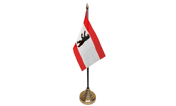 The Berlin Small Table Flag features the city's flag, consisting of three horizontal bands: red at the top, white in the middle, and red at the bottom, with a prominent black bear in the center. The black bear is the symbol of Berlin and represents the city's strength, independence, and historical significance. This flag is a source of pride for Berliners and is widely displayed across the city during public holidays, national celebrations, and events. These table flags provide a miniature version of this meaningful design, perfect for use on desks, at cultural events, and during international gatherings.