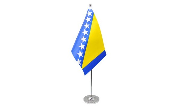 Searching for "premium satin table flags," "Bosnian pride decorations," or "table flags with chrome pole and base"? The Bosnia and Herzegovina Satin Table Flag is the perfect choice for anyone looking to celebrate Bosnia and Herzegovinaà¢àâ¬àâ¢s national pride and cultural heritage. Whether displayed at national celebrations, cultural events, or in office settings, this flag will make a bold statement. The satin fabric ensures the flag remains vibrant and beautiful over time, while the chrome pole ensures it stays securely in place throughout the event.