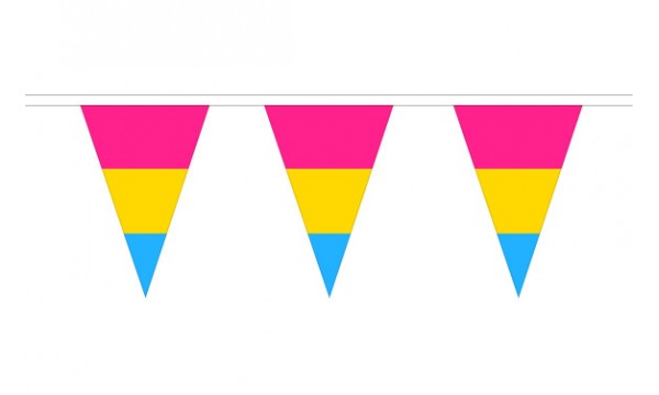 Celebrate pansexual pride and inclusivity with our premium Pansexual Triangle Bunting. Featuring the vibrant pink, yellow, and blue colors of the Pansexual Pride Flag, this bunting is perfect for any event that honors pansexual visibility, LGBTQ+ pride, and gender inclusivity. Whether you're hosting a pride celebration, a LGBTQ+ event, or decorating for a community gathering, this bunting will create a festive and empowering atmosphere. The triangular pennants display the bold pink, yellow, and blue stripes, which symbolize attraction to all genders: pink for attraction to people of the same gender, yellow for attraction to non-binary people, and blue for attraction to people of a different gender. Crafted from durable, weather-resistant fabric, this bunting is perfect for both indoor and outdoor use, making it ideal for public events, pride parades, and private gatherings. Easy to hang and reusable, it's the perfect decoration for any occasion that celebrates the beauty of pansexuality and inclusivity.