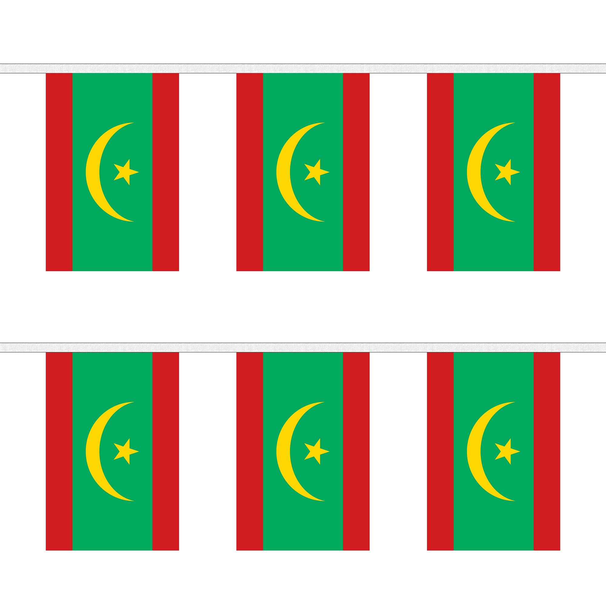 The Mauritania New Rectangular Bunting proudly displays the vibrant green and gold colors of the new Mauritanian flag, symbolizing the countryå¿åé©î progress and bright future. Perfect for celebrating Mauritaniaå¿åé©î National Day, local festivals, or any event that honors the modern identity of Mauritania, this bunting will add a festive and patriotic touch to your gathering. Its strong design ensures it will stand out, making it an excellent addition to your decorations.