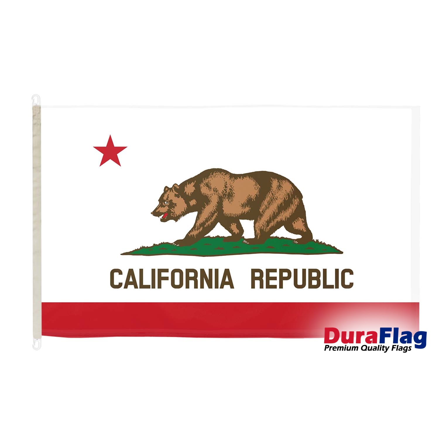 The California DuraFlag features the official California state flag, which consists of a white background, a red stripe along the bottom, and an image of a grizzly bear in the center, representing California's state animal. The flag also includes a red star in the top left corner, symbolizing California's role as a former independent republic. The design represents California's strength, pride, and independence, making it a powerful symbol of the state's rich history and cultural heritage.