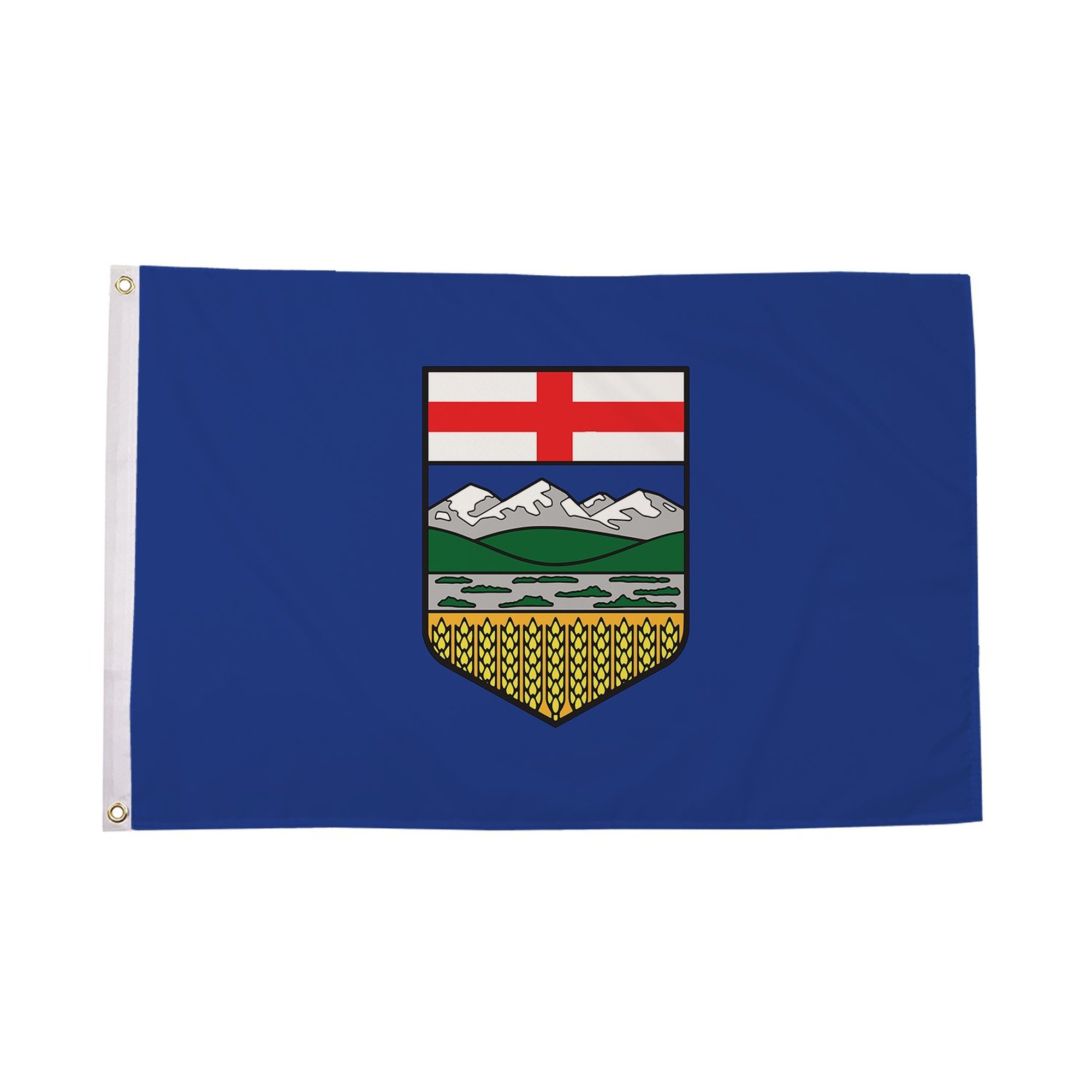 The Alberta Flag is a powerful symbol of the Canadian province of Alberta, representing its history, culture, and natural beauty. Adopted in 1968, the flag features a bold blue background with the provincial shield of Alberta in the upper left corner. The shield itself showcases Alberta's vast and diverse landscape, with the Rocky Mountains, the prairies, and the sky represented in vibrant colors. The Alberta Flag is a proud emblem of the province's identity, and it highlights Alberta's role as a strong and prosperous part of Canada. Crafted from durable polyester, this flag is designed for both indoor and outdoor use, ensuring that its vivid colors and intricate details remain intact in all weather conditions. Whether you're a resident of Alberta, a proud Canadian, or someone who appreciates the province's natural beauty, displaying this flag is a way to show support for Alberta's heritage and future.