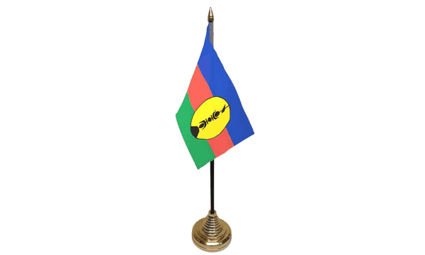 Celebrate the beauty and culture of New Caledonia with our beautifully crafted New Caledonia Small Table Flags. Featuring the striking blue, green, yellow, and red horizontal stripes along with the iconic black Kanak symbol, this miniature desk flag represents the rich cultural heritage and history of New Caledonia. Perfect for national celebrations, cultural events, or international conferences, these table flags are ideal for showcasing your pride for New Caledonia. Made from durable materials, these desk flags are designed to last and are perfect for repeated use at various events.