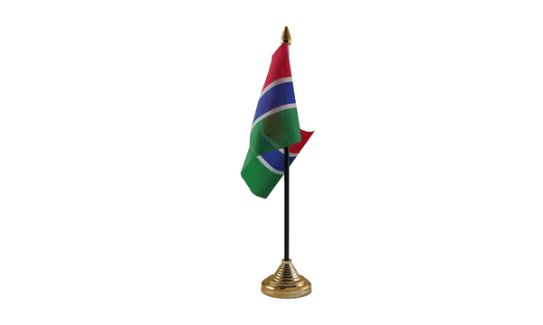 Showcase your pride for The Gambia with our premium Gambia Small Table Flags. These beautifully crafted desk flags feature the vibrant colors of the Gambian flag, symbolizing the country's rich culture, history, and national pride. With its iconic red, blue, and green stripes, complemented by a white stripe in the middle, these table flags represent The Gambia's determination, peace, and natural beauty. Perfect for celebrations, international events, or simply adding a cultural touch to your office or home decor, these miniature flags are an excellent way to express your connection to this West African nation. Made from high-quality, durable materials, they ensure long-lasting use during various events and are suitable for display year-round.