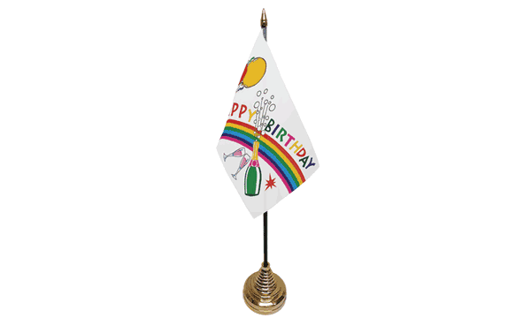Celebrate any birthday with a fun and unique twist using our Happy Birthday Bottle Small Table Flag. Featuring a cheerful design with the iconic "Happy Birthday" message and a bottle illustration, this desk flag is the perfect addition to birthday parties, especially for those celebrating with a toast. Whether placed at the party tables, cake stands, or as part of the decor, this table flag adds a festive touch to the celebration. Made from high-quality, durable materials, these miniature flags are designed for lasting use and will brighten any birthday party.