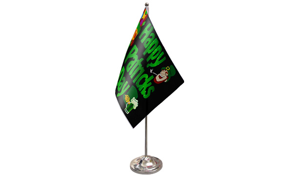 Searching for "premium satin table flags," "St. Patrickà¢àâ¬àâ¢s Day flag decorations," or "table flags with chrome pole and base"? The Happy St. Patrick's Day (Black) Satin Table Flag is the perfect way to elevate any St. Patrickà¢àâ¬àâ¢s Day celebration. With its premium satin fabric and bold design, this flag will leave a lasting impression on your guests and create a festive, fun-filled atmosphere. Add a touch of elegance and excitement to your St. Patrickà¢àâ¬àâ¢s Day party with this high-quality table flag.