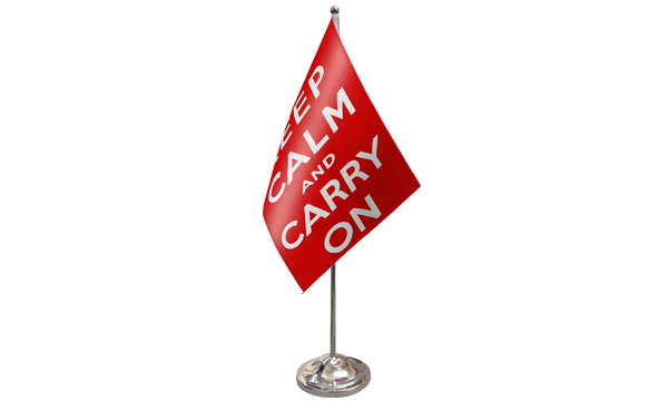 Searching for "premium satin table flags," "Keep Calm decorations," or "table flags with chrome pole and base"? The Keep Calm and Carry On (Red) Satin Table Flag is the perfect way to elevate any event with a vintage British flair. With its high-quality satin fabric and vibrant design, this flag will make a lasting impression and add a fun, timeless element to your event or decor.