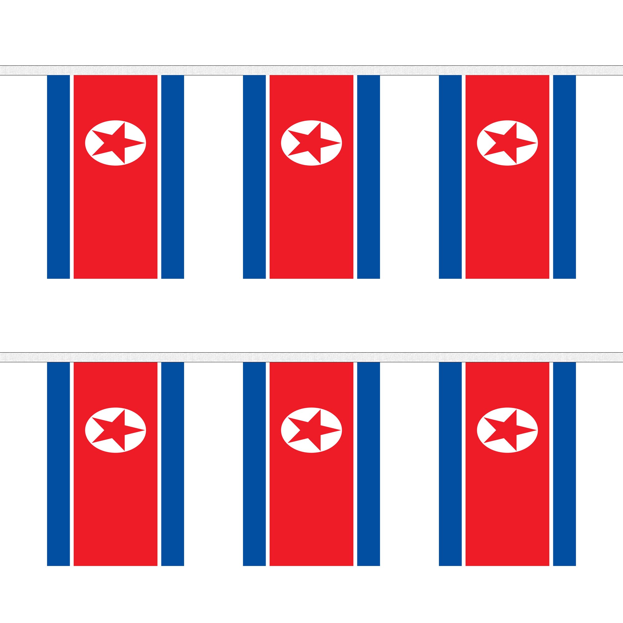 Celebrate the unique heritage and cultural pride of North Korea with our striking Korea North Rectangular Bunting. Featuring the bold red, blue, and white colors of the North Korean flag, along with the iconic star emblem, this bunting is perfect for national holidays, cultural events, or any celebration that honors North Koreaå¿åé©î history and identity. Made from durable, weather-resistant polyester, it ensures that the colors stay vibrant, even when displayed outdoors. The rectangular design makes it easy to hang across walls, fences, or doorways, adding a festive and patriotic touch to any celebration.