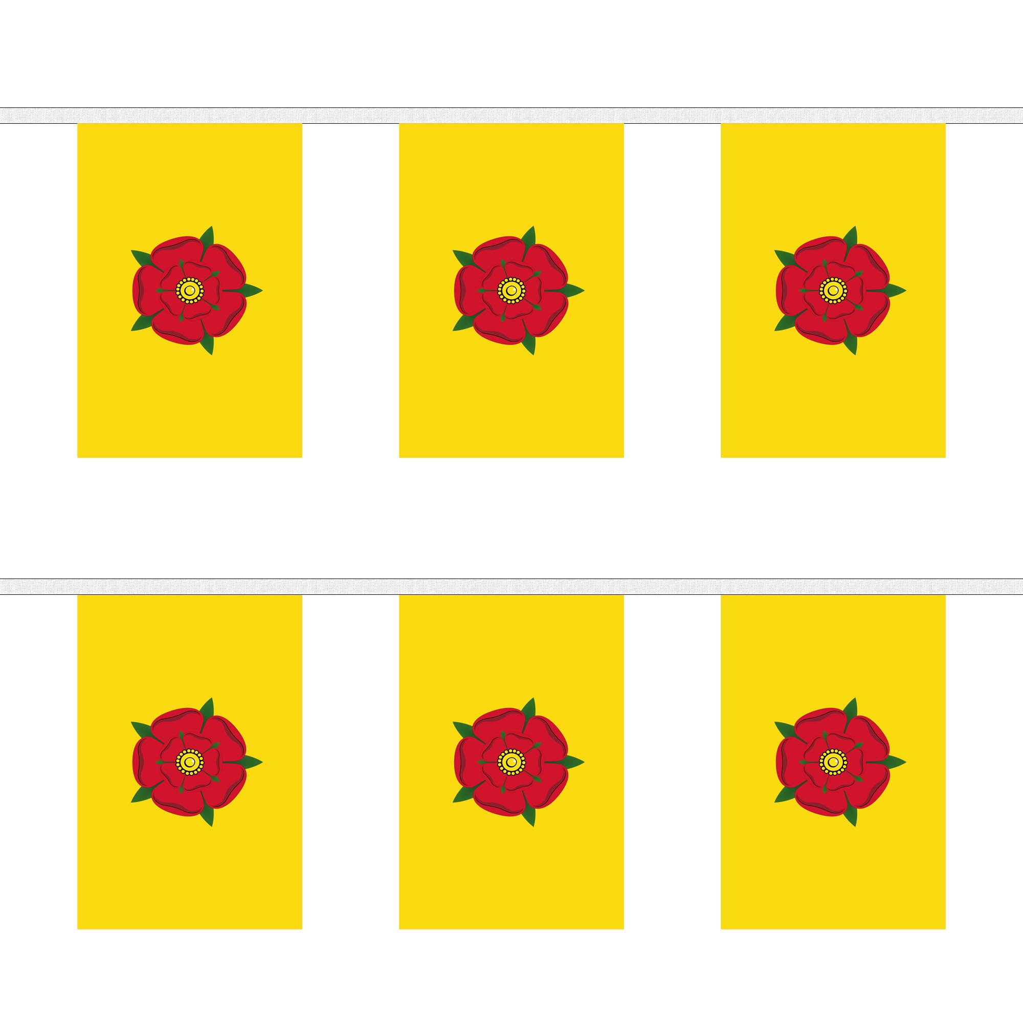 Whether you're celebrating Lancashire Day, hosting a community event, or participating in a regional festival, this bunting will bring a sense of pride and unity to your celebration. Its durable polyester construction ensures it can be displayed both indoors and outdoors, making it suitable for all types of events. Whether decorating a public space, home, or community gathering, this bunting will create a festive atmosphere.