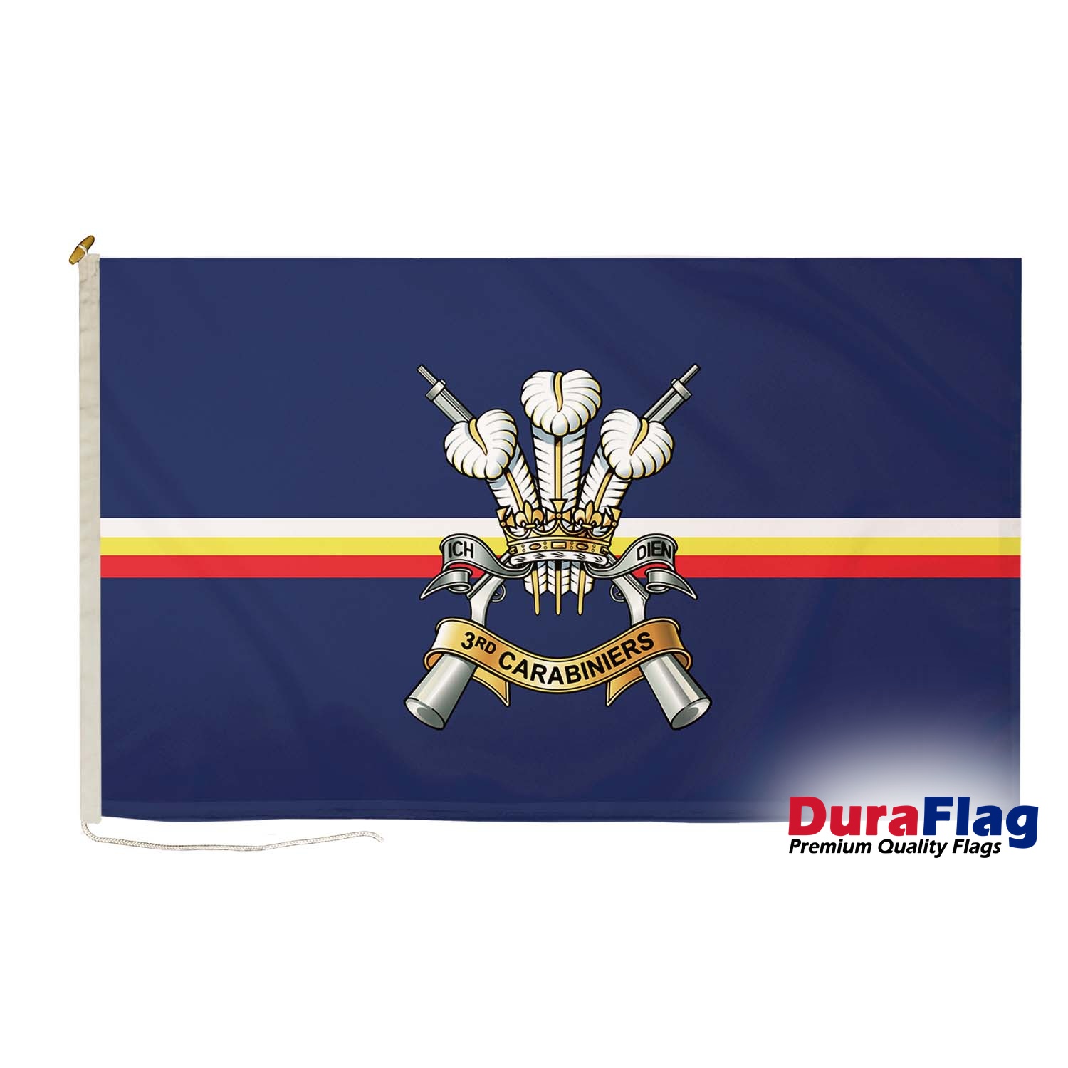 The 3rd Carabiniers, originally formed as a cavalry regiment, has a long and proud history in the British Army. The regiment has participated in numerous significant campaigns, serving with distinction in both World Wars and various peacekeeping missions. The 3rd Carabiniers DuraFlag represents the regiment's elite status, with its striking colors and emblem symbolizing the bravery and professionalism of the soldiers who served in this prestigious unit. The flag is a tribute to the regiment's history and continuing legacy in the British Army.