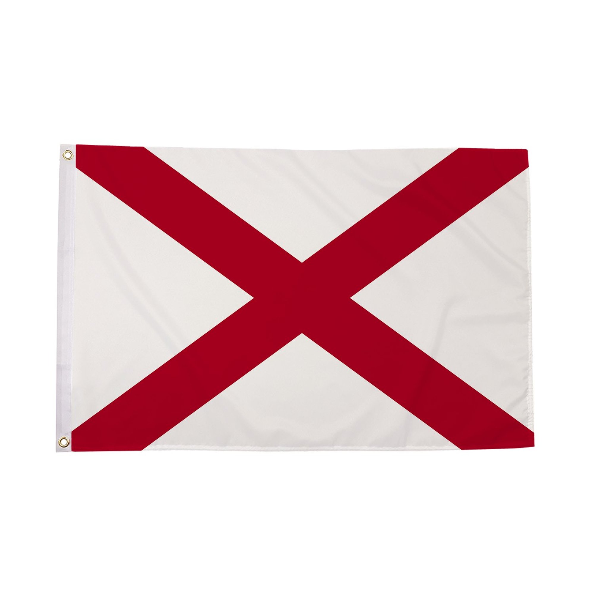 The Alabama Flag is a simple yet striking representation of the state's heritage, pride, and identity. Featuring a bold crimson cross over a white field, the flag is one of the most recognizable state flags in the United States. Adopted in 1895, the design is rooted in Alabama's history and symbolizes the state's values of unity, strength, and resilience. The cross on the flag represents the state's commitment to these ideals and evokes a sense of belonging for its citizens. The Alabama Flag is crafted from high-quality polyester, designed for both indoor and outdoor use, ensuring its vibrant colors and clean lines remain bold and intact through the seasons. Displaying this flag is a proud expression of Alabama's rich history and the unity of its people.