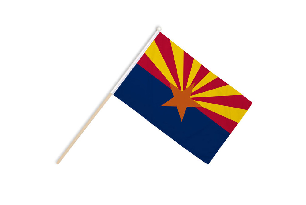 The Arizona Hand Flag is a striking symbol of the state's rich history, vibrant culture, and connection to the American Southwest. Featuring the iconic copper, red, yellow, and blue colors of the Arizona state flag, this hand-held flag represents Arizona's natural beauty, its legacy as the "Grand Canyon State," and its proud identity as part of the United States. The Arizona Hand Flag is perfect for celebrating Arizona's statehood, supporting local sports teams, or participating in cultural events that showcase the state's unique heritage. Crafted with durable materials, this flag is designed to maintain its vibrant colors and withstand repeated use. Lightweight and easy to carry, the Arizona Hand Flag is ideal for waving at public events, parades, and festivals that celebrate Arizona's culture and pride.