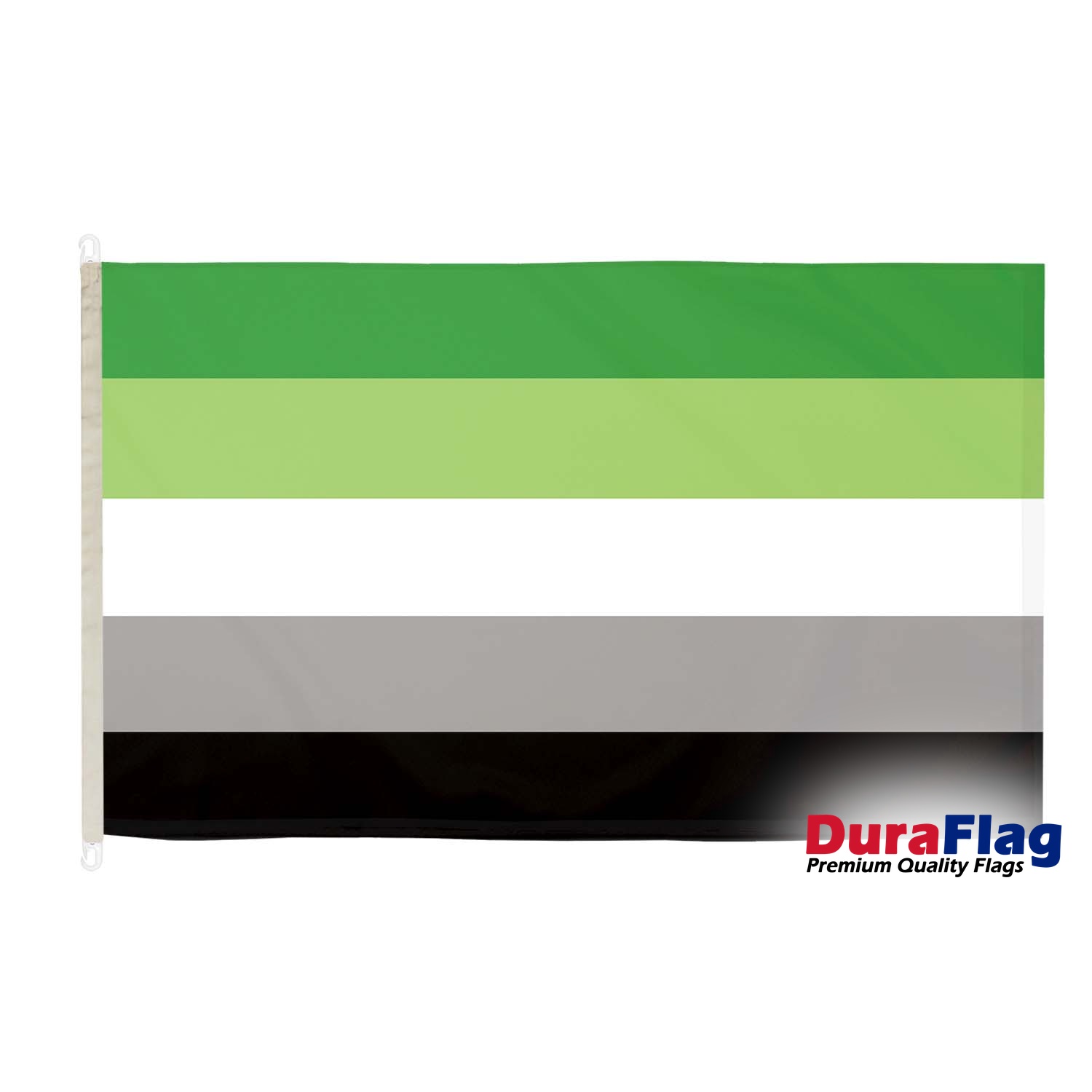 The Aromantic DuraFlag is a premium flag that represents the aromantic community, symbolizing those who experience little or no romantic attraction. Featuring the distinctive aromantic pride colors, this flag is a meaningful expression of individuality, identity, and inclusivity. Constructed from durable, weather-resistant materials, the Aromantic DuraFlag is perfect for both indoor and outdoor displays. Whether you're celebrating Pride, participating in community events, or showcasing support for the aromantic spectrum, this flag offers a lasting tribute. With versatile fittings such as rope and toggles, clips, and D-rings, it can be flown on flagpoles, displayed at events, or used as a boat flag, making it a durable and versatile symbol of pride for the aromantic community.