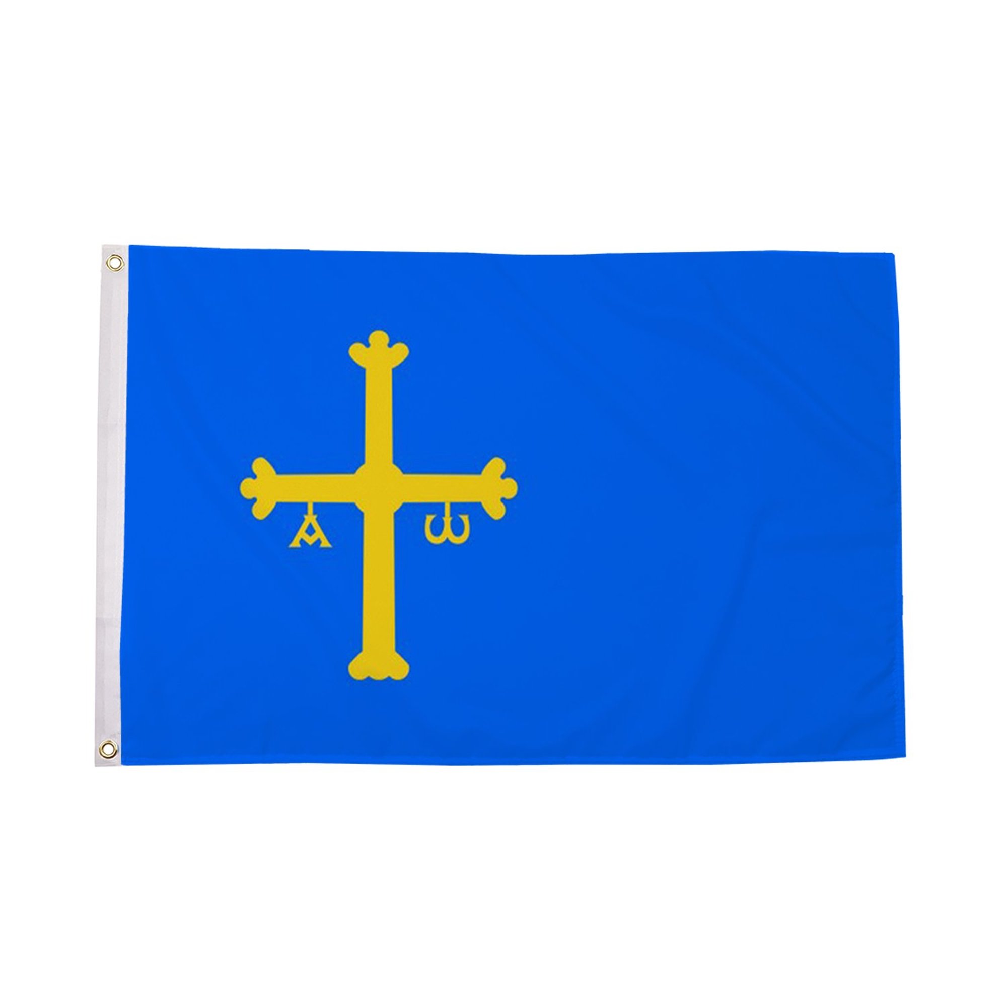 The Asturias Flag is a vibrant and historically rich symbol of the Spanish autonomous community of Asturias, located in the northern region of the country. The flag features a striking design, primarily composed of blue and gold, with the Saint James Cross (known as the Cross of the Asturian Kings) at its center. The blue background represents the region's natural beauty, from its coastal waters to the vast sky, while the golden cross is a symbol of the Asturias' deep-rooted Christian heritage and the region's historical connection to the Reconquista. The Asturias Flag serves as a proud representation of Asturias' cultural identity, history, and its people's strong sense of pride. Made from durable polyester, this flag is perfect for both indoor and outdoor use, ensuring that its colors remain vibrant and symbolic in various weather conditions. Whether flown during cultural events, official ceremonies, or as part of a personal collection, the Asturias Flag is a proud tribute to the people of Asturias and their rich historical legacy.