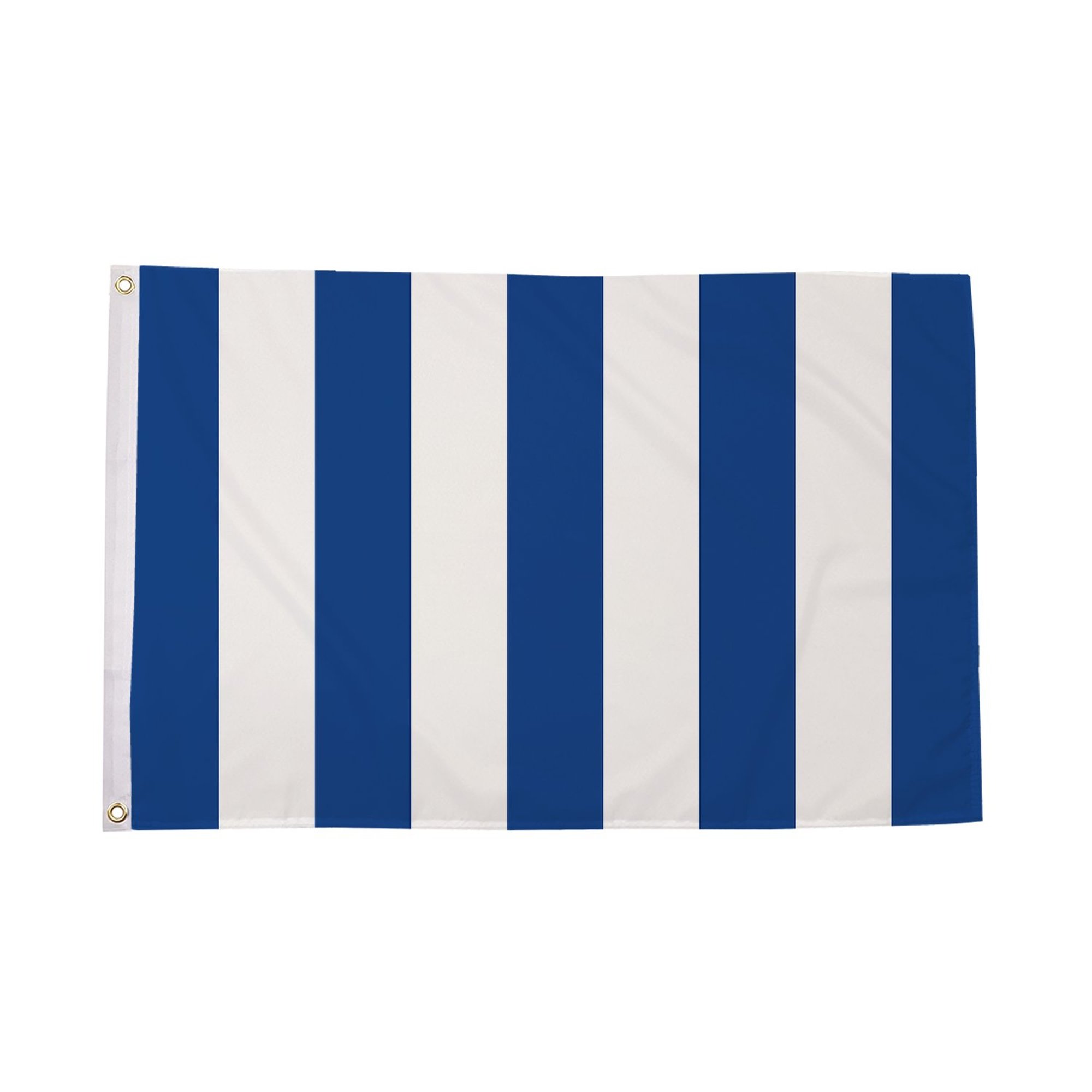 Its sleeved design makes it easy to display on flagpoles or similar structures, ensuring it stays secure even in windy conditions. Whether you're using it for an outdoor parade, indoor decoration, or as part of a corporate display, the Blue and White Striped Flag (Sleeved) will stand out and add a vibrant touch to any setting.