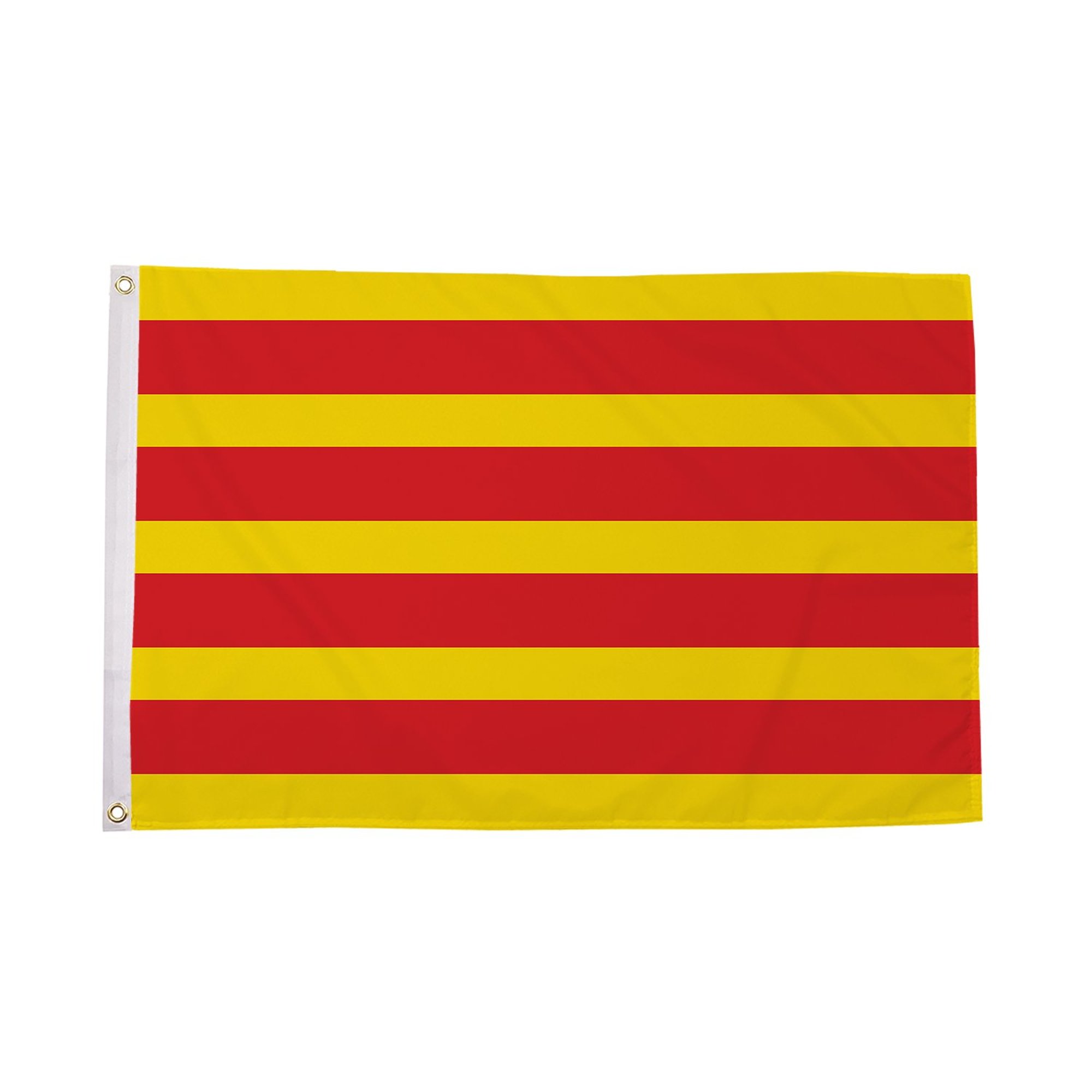 The Catalonia Flag, also known as the "Senyera," is a traditional symbol of Catalonia's rich cultural and historical heritage. Featuring four red vertical stripes on a golden yellow background, this flag dates back to the medieval period and represents the historical identity of Catalonia within the Kingdom of Aragon. The design is one of the most important symbols of the Catalan people and their distinct culture, autonomy, and national pride. The Catalonia Flag is not only a symbol of the region's medieval past but also of its contemporary struggle for self-determination and independence. Made from durable polyester, this flag is designed for both indoor and outdoor use, ensuring its vibrant colors remain intact through any weather conditions. Whether displayed at cultural events, political protests, or as part of a personal collection, the Catalonia Flag serves as a powerful statement of Catalan unity, pride, and ongoing aspirations for sovereignty.