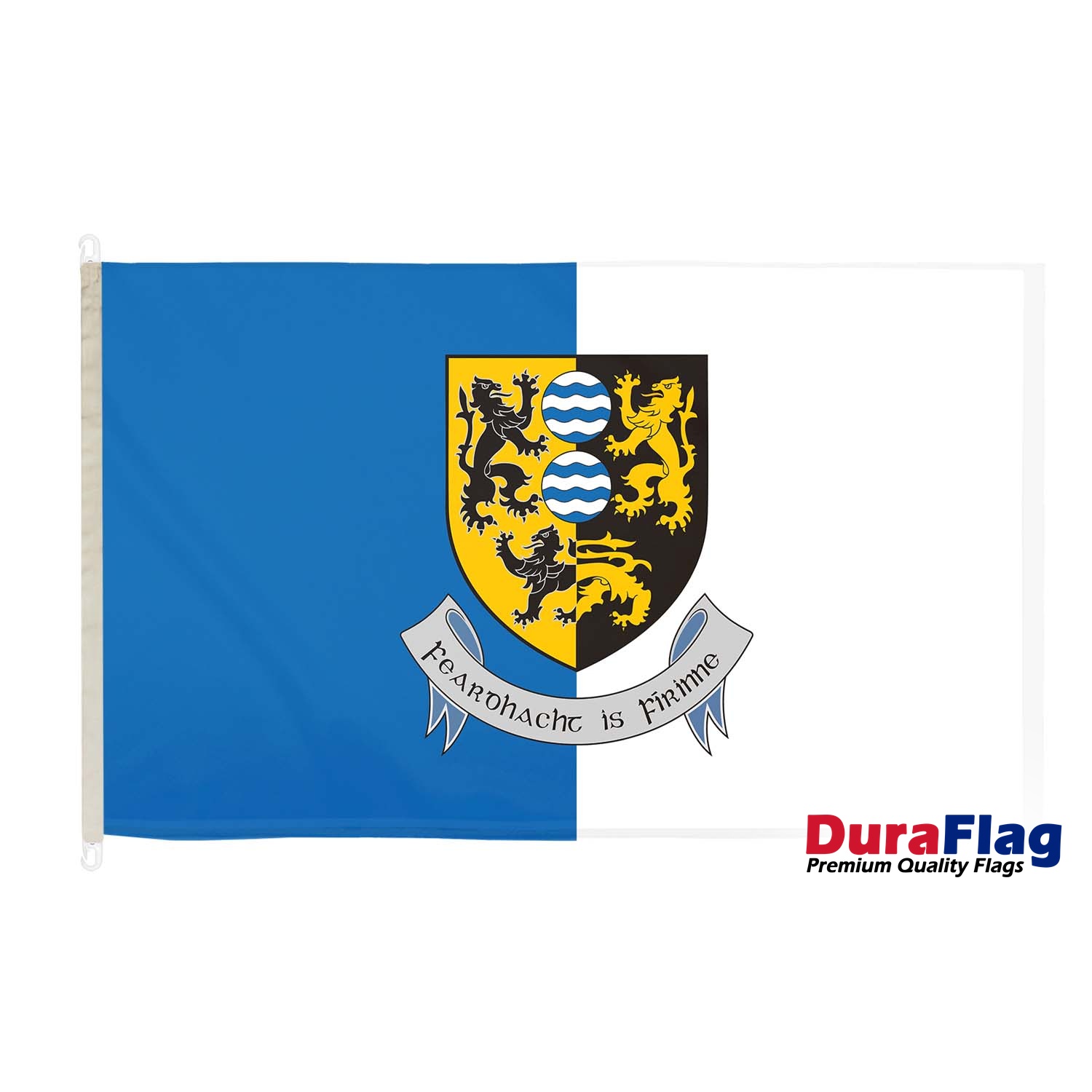 Whether you're looking for a professional flag, a premium flag, or a heavy-duty flag for outdoor use, the Cavan DuraFlag is an excellent choice. With customizable fittings like rope and toggles, clips, and D-rings, this flag is easy to display at home, in the community, or at events. Its strong construction and vibrant colors ensure that it makes a lasting impression, symbolizing the pride and cultural identity of County Cavan. Celebrate your local heritage with the Cavan DuraFlag, the perfect choice for any occasion.
