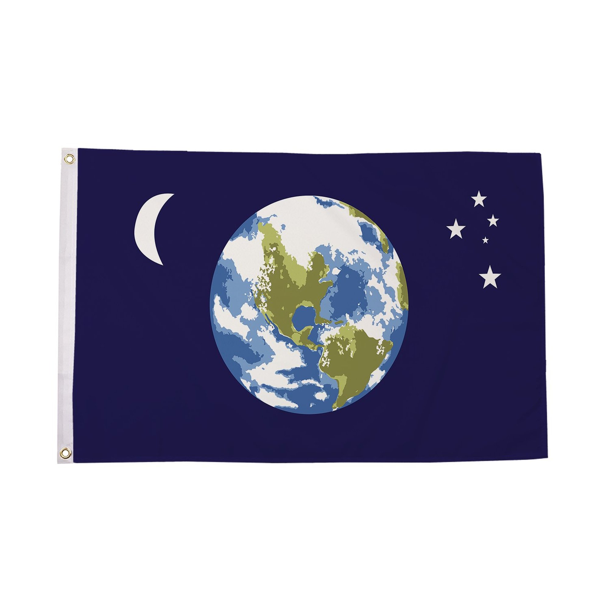 This flag is ideal for use at space-themed events, science fairs, or astronomy gatherings. Its detailed design captures the essence of space exploration and the vastness of the universe, making it a great tool for education or as a conversation starter. The Earth, Moon and Stars Flag also makes a unique addition to any space enthusiast's collection.