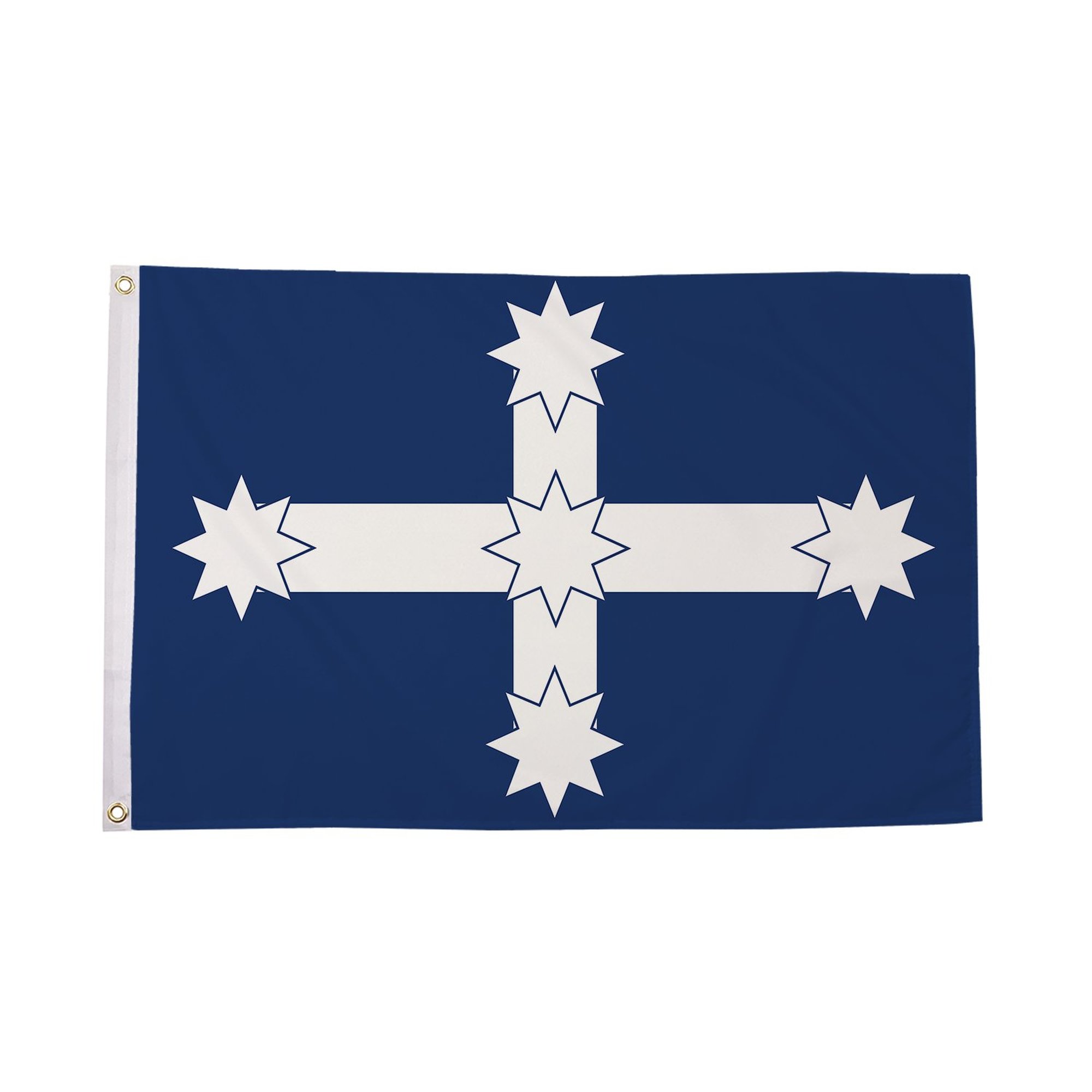 The Eureka Flag is a significant symbol of Australian history and rebellion, associated with the Eureka Rebellion of 1854. The flag features a dark blue background with a white cross, and five white stars representing the constellation of the Southern Cross. It is a symbol of defiance, justice, and the fight for workers' rights, famously flown during the rebellion in Ballarat, Victoria. The Eureka Flag has since become a symbol of Australian unity and independence, reflecting the struggles and aspirations of early settlers and workers. Made from durable polyester, this flag is designed for both indoor and outdoor use, ensuring that its vibrant colors and powerful symbolism remain visible through all seasons. Whether displayed during historical events, celebrations of Australian heritage, or as part of a personal collection, the Eureka Flag stands as a lasting tribute to the courage, solidarity, and spirit of the Australian people.