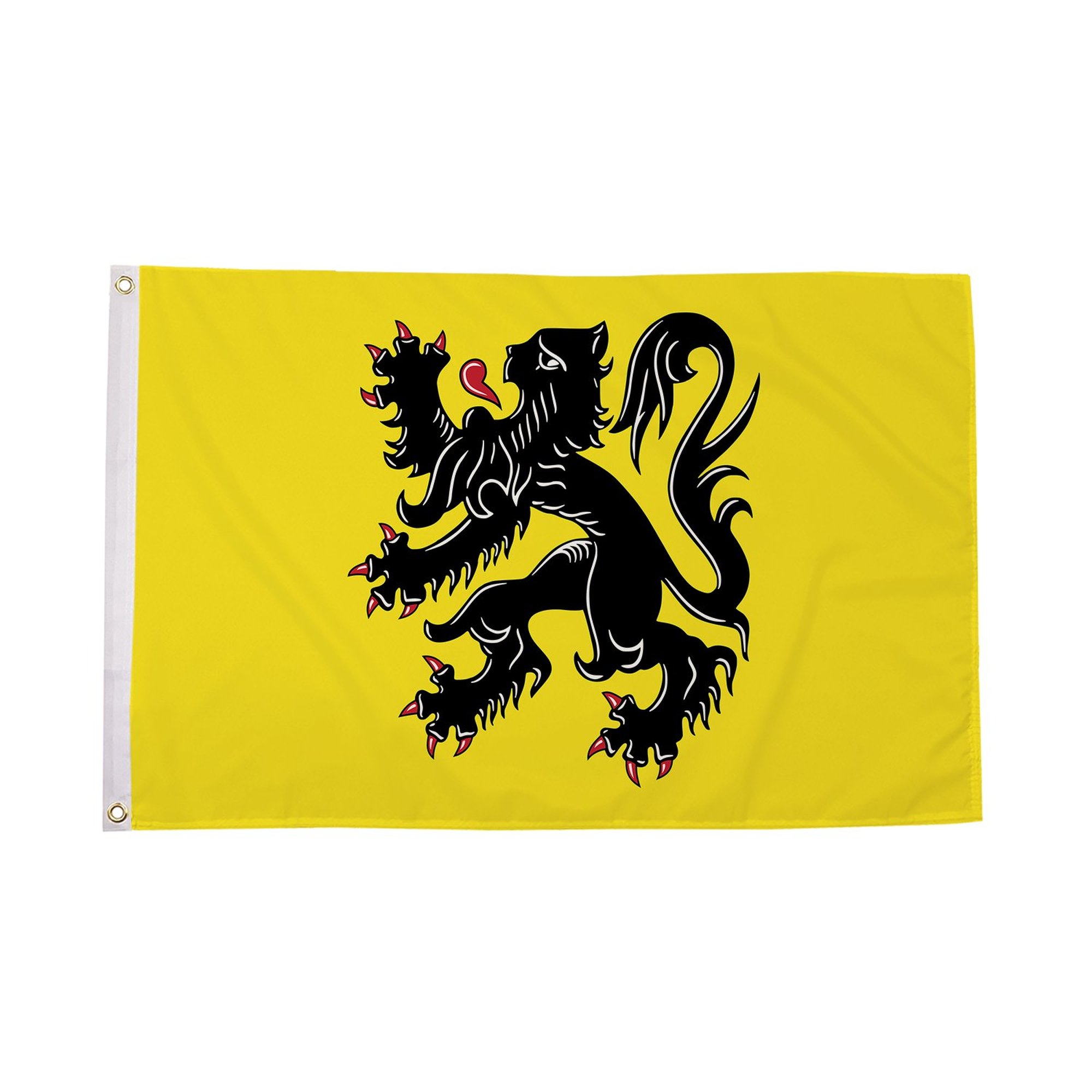 The Flanders Lion Flag showcases a fierce black lion against a vibrant golden yellow background. This striking design is not only a symbol of regional pride but also represents the strength and determination of the people of Flanders. The lion has long been associated with the region's history, and the flag is an enduring emblem of Flanders' role in Belgium's cultural and political identity.