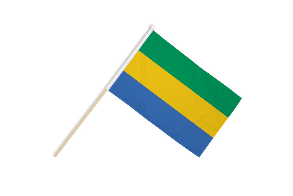 The Gabon Hand Flag features the official flag of Gabon, which consists of three horizontal stripes: green at the top, yellow in the middle, and blue at the bottom. The green represents Gabon's rich natural resources and the country's commitment to environmental preservation, the yellow symbolizes the country's wealth, and the blue represents the ocean that borders Gabon. This flag serves as a powerful reminder of Gabon's rich natural beauty, its commitment to economic progress, and its peaceful future.