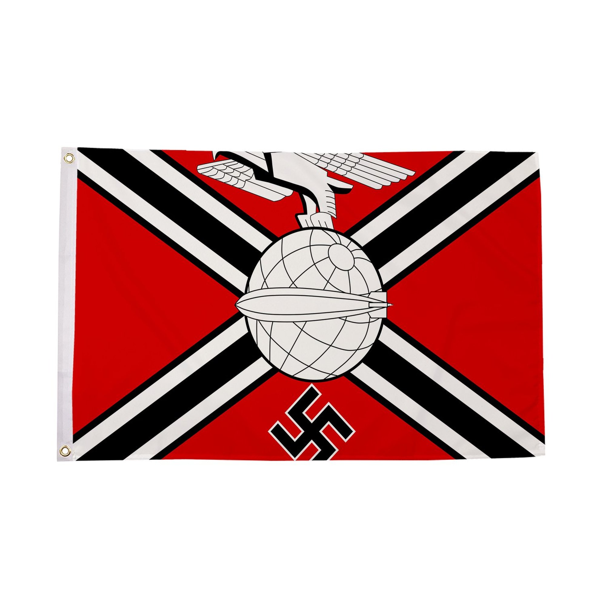 The German Airship (Zeppelin) Flag is a tribute to the iconic airships of the German Empire and the early 20th century. Featuring a bold and distinctive design, this flag represents the pioneering spirit of German engineering and aviation. The Zeppelin, a symbol of power, innovation, and military might, played a significant role during World War I and in the development of air travel. The German Airship Flag incorporates the traditional black, white, and red colors, with a unique emblem that highlights the importance of the Zeppelin in Germany's military and technological history. Made from durable polyester, this flag is designed for both indoor and outdoor use, ensuring its vivid colors and historical significance remain visible through all seasons. Whether displayed during aviation events, military commemorations, or as part of a personal collection, the German Airship (Zeppelin) Flag serves as a lasting tribute to Germany's legacy in aviation.