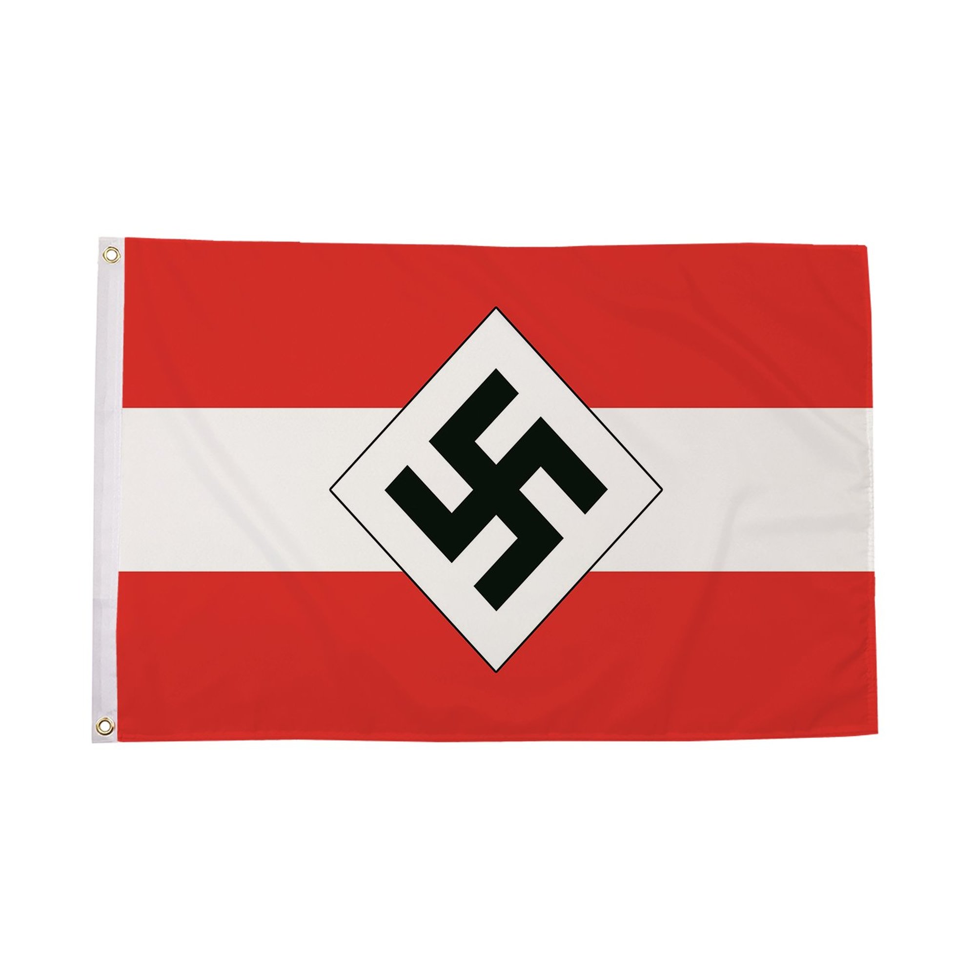 The German Youth Regiment Flag is an important historical symbol of the Nazi Youth movement, specifically representing the regimented units that were part of the broader National Socialist ideology. The flag is adorned with the distinct emblems of the German Youth, a movement that aimed to indoctrinate young Germans with nationalist, militaristic, and Nazi values. Featuring bold colors, such as red, black, and white, along with the iconic swastika emblem, this flag symbolizes the power and militarization of youth during the Nazi regime. Constructed from durable polyester, the German Youth Regiment Flag is designed for both indoor and outdoor use, maintaining its vibrant colors and striking symbols through various weather conditions. Whether displayed in historical exhibitions, military collections, or educational settings, this flag serves as a reminder of the deep connection between the Nazi regime and its efforts to shape and control the younger generations.