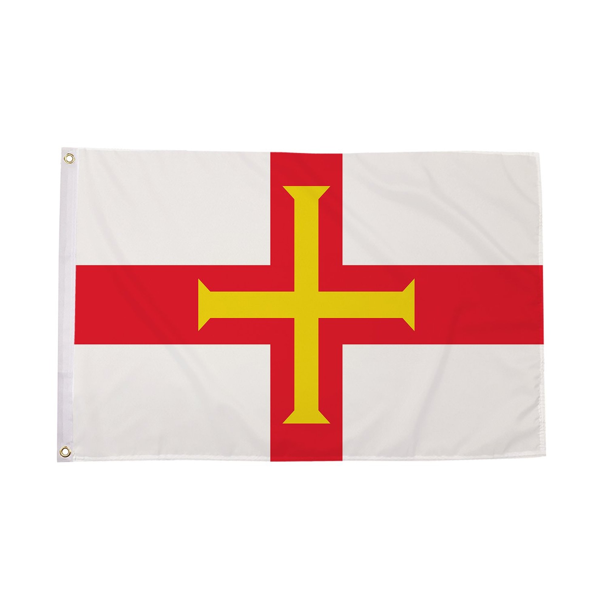 The Guernsey Flag is a powerful symbol of the Channel Island of Guernsey, representing its unique heritage, history, and connection to both England and the continent. The flag consists of a red cross on a white field, with a yellow and red four-pointed cross in the center, known as the "Cross of Guernsey." The red and white colors are a reflection of the island's ties to England, while the yellow and red cross symbolizes the island's historical connection to the Norman heritage and the island's independence. The Guernsey Flag is an emblem of pride for the people of Guernsey, displaying both the island's British roots and its distinct cultural identity. Made from durable polyester, the Guernsey Flag is designed for both indoor and outdoor use, ensuring that its bold colors and powerful symbolism remain visible through all seasons. Whether displayed during national holidays, public celebrations, or as part of a collection, this flag proudly represents the heritage and pride of Guernsey.