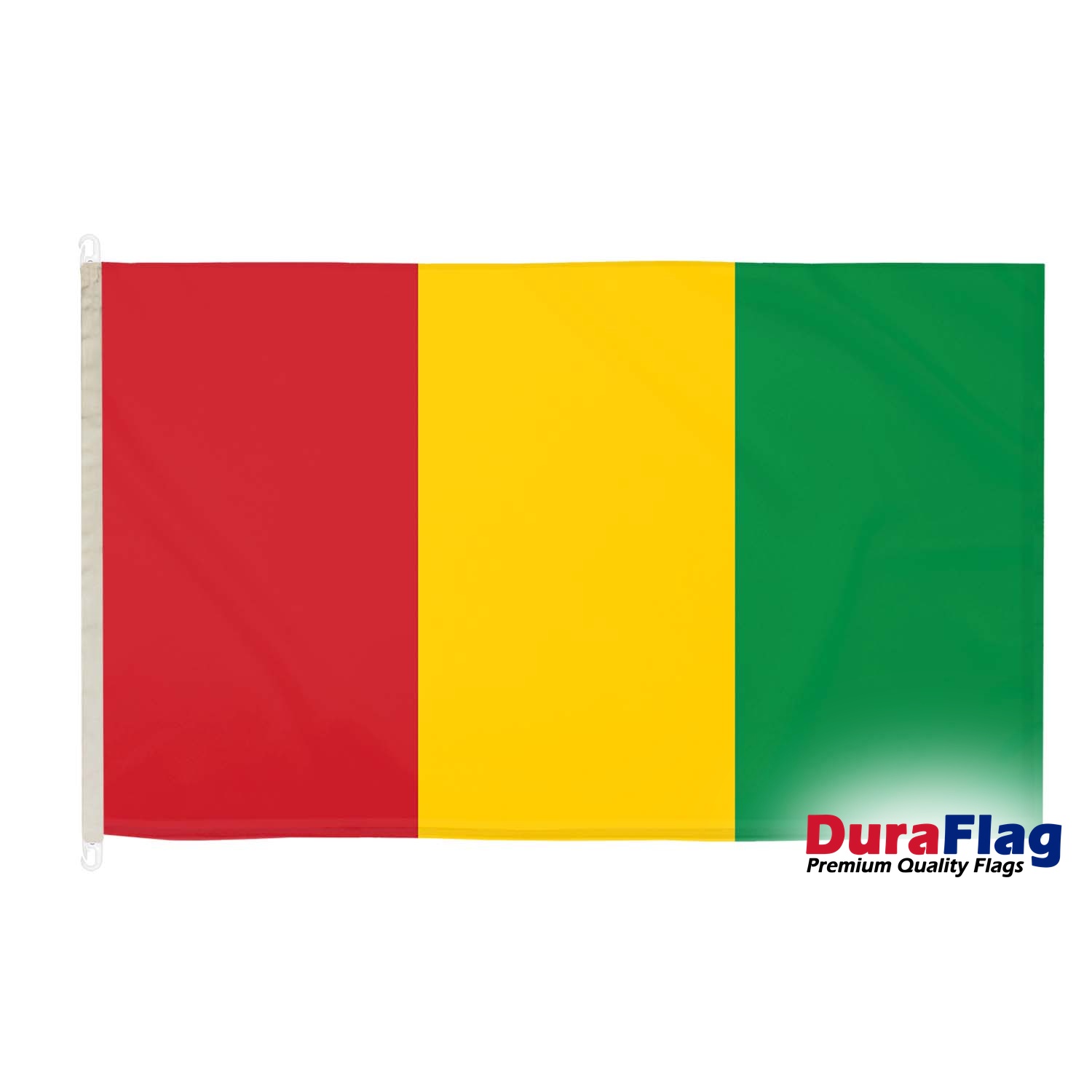 The Guinea DuraFlag is a premium flag representing the Republic of Guinea, a country located in West Africa. Featuring the national flag's iconic red, yellow, and green vertical stripes, this flag symbolizes Guinea's commitment to unity, freedom, and progress. The red represents the bloodshed for independence, the yellow symbolizes the country's wealth and resources, and the green represents the fertile land and the hope for a prosperous future. Made from durable, weather-resistant materials, the Guinea DuraFlag is perfect for both indoor and outdoor displays. Whether flown during national celebrations, public events, or as a boat flag along Guinea's coast, this flag ensures a professional and lasting display with versatile fittings like rope and toggles, clips, and D-rings for secure installation.