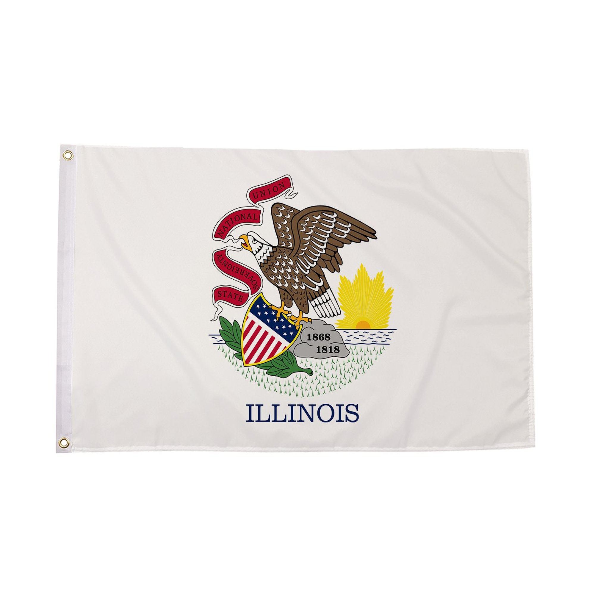 The Illinois Flag features the official state seal, which includes a bald eagle, rising sun, and symbols of the state's agriculture and industry. This flag is a representation of Illinois' pride and strength.