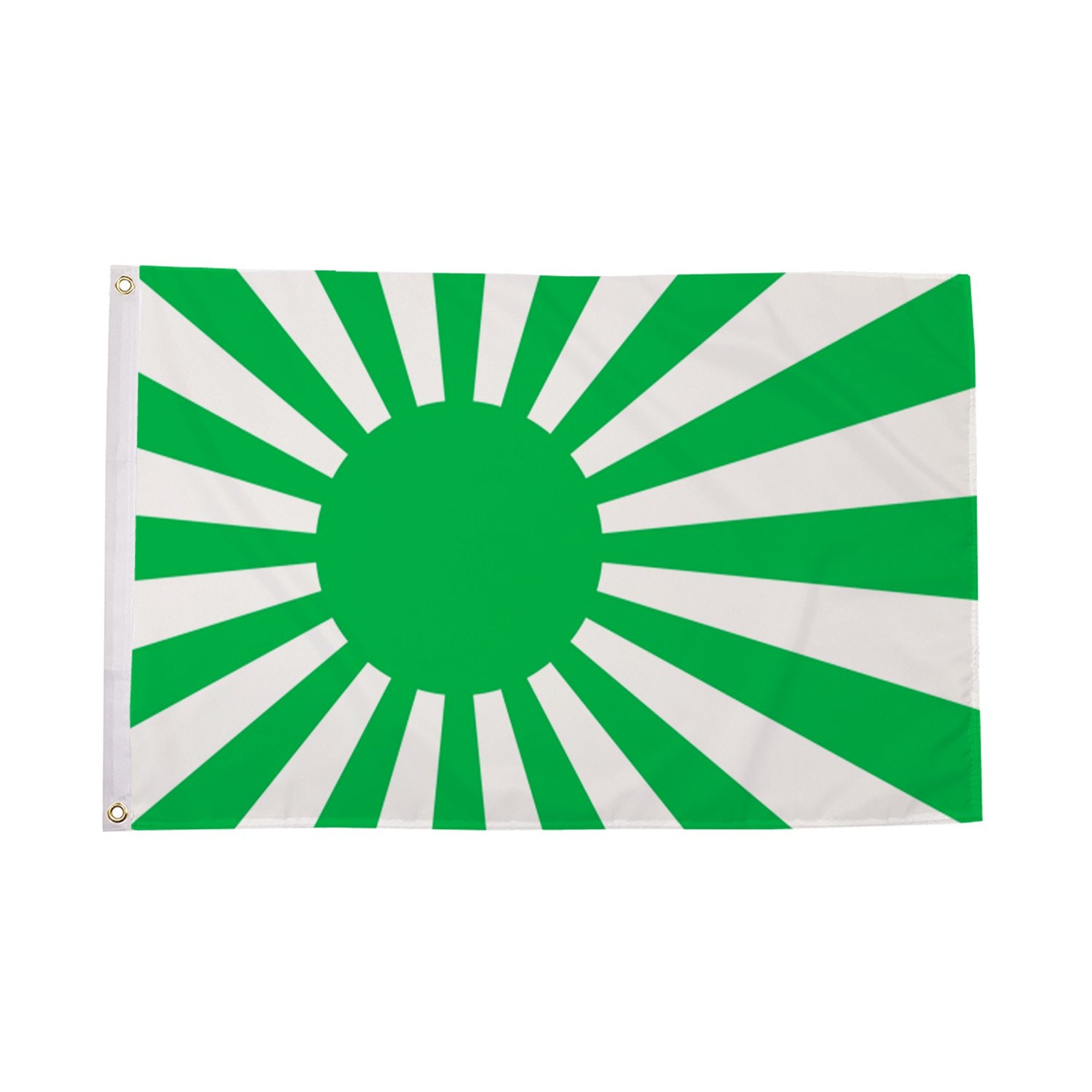 The Japan Rising Sun (Green) Flag modernizes the traditional Rising Sun design with a vibrant green background that symbolizes nature, growth, and the connection to the land. Featuring a bold red sun at the center with 16 rays radiating outward, this flag embodies vitality, renewal, and the country's deep cultural ties to the sun. The green color gives the flag a fresh, contemporary twist while maintaining the powerful symbolism of the classic design.