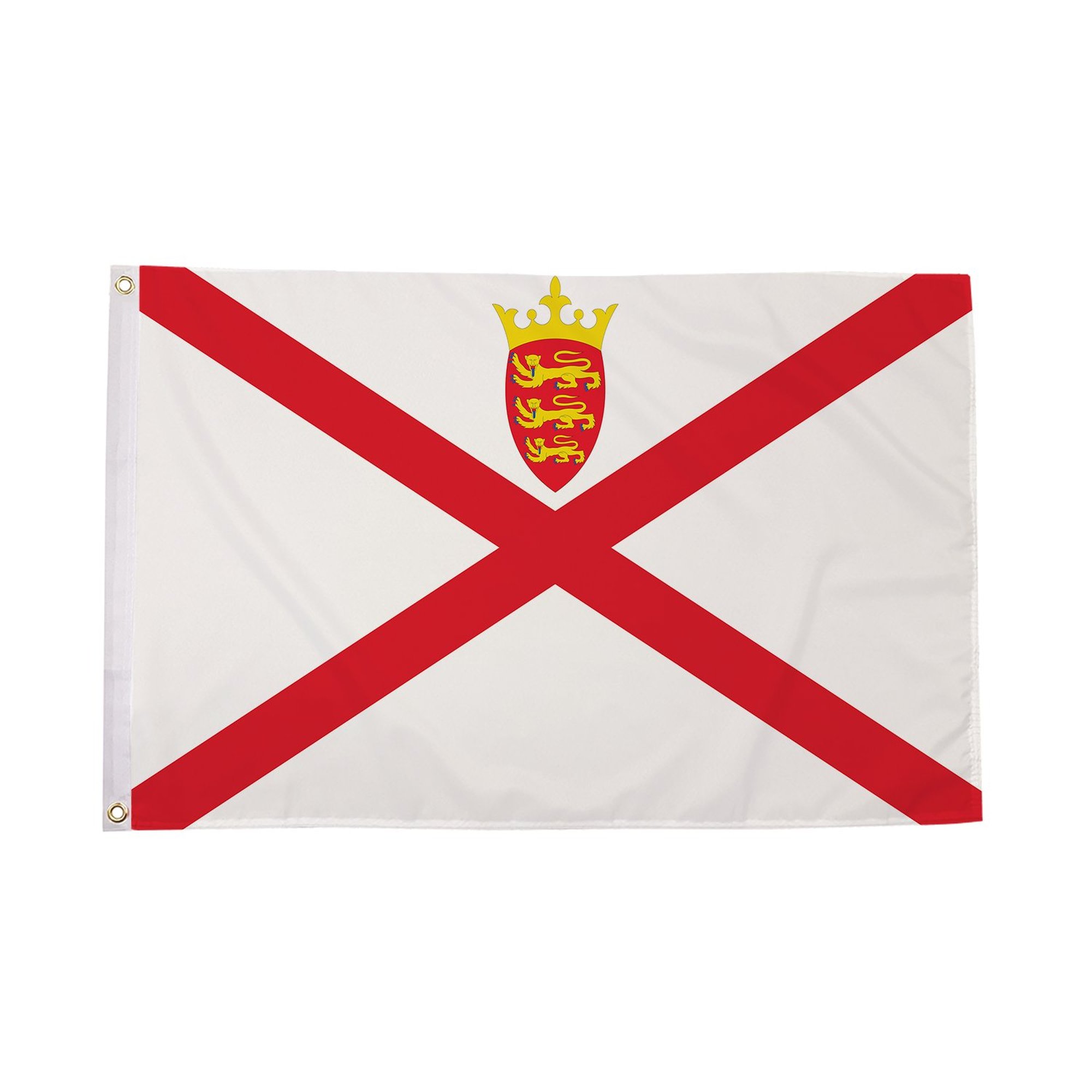 The Jersey Flag is a powerful symbol of the island's heritage and proud national identity. Featuring a striking red and white design, the flag incorporates a red cross on a white field, with the island's royal coat of arms placed in the upper-left corner. The Jersey Flag is steeped in the history of this self-governing Crown dependency, which has a unique connection to the British monarchy. The red cross represents the island's Christian roots and its long history of association with the English crown, while the coat of arms represents Jersey's royal connection and independence. Made from durable polyester, this flag is designed to withstand outdoor conditions, keeping its bold red and white colors vibrant. Whether you're showcasing Jersey's unique identity at cultural events, historical ceremonies, or simply as a decorative piece in your home, this flag serves as a proud representation of Jersey's national pride.