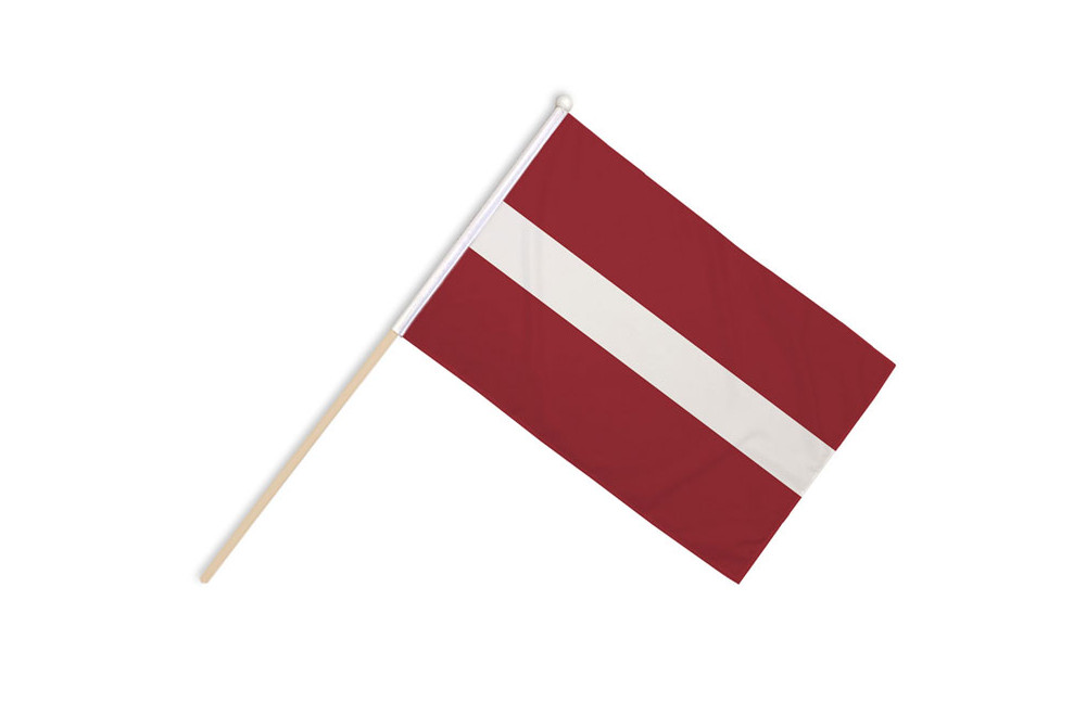 The Latvia Hand Flag proudly displays the national flag of Latvia, with its deep red background and a central white stripe. The red color represents the blood shed by the Latvian people during their fight for independence, while the white stripe symbolizes purity, unity, and peace. This flag is a powerful reminder of Latvia's struggle for sovereignty and the resilience of its people.