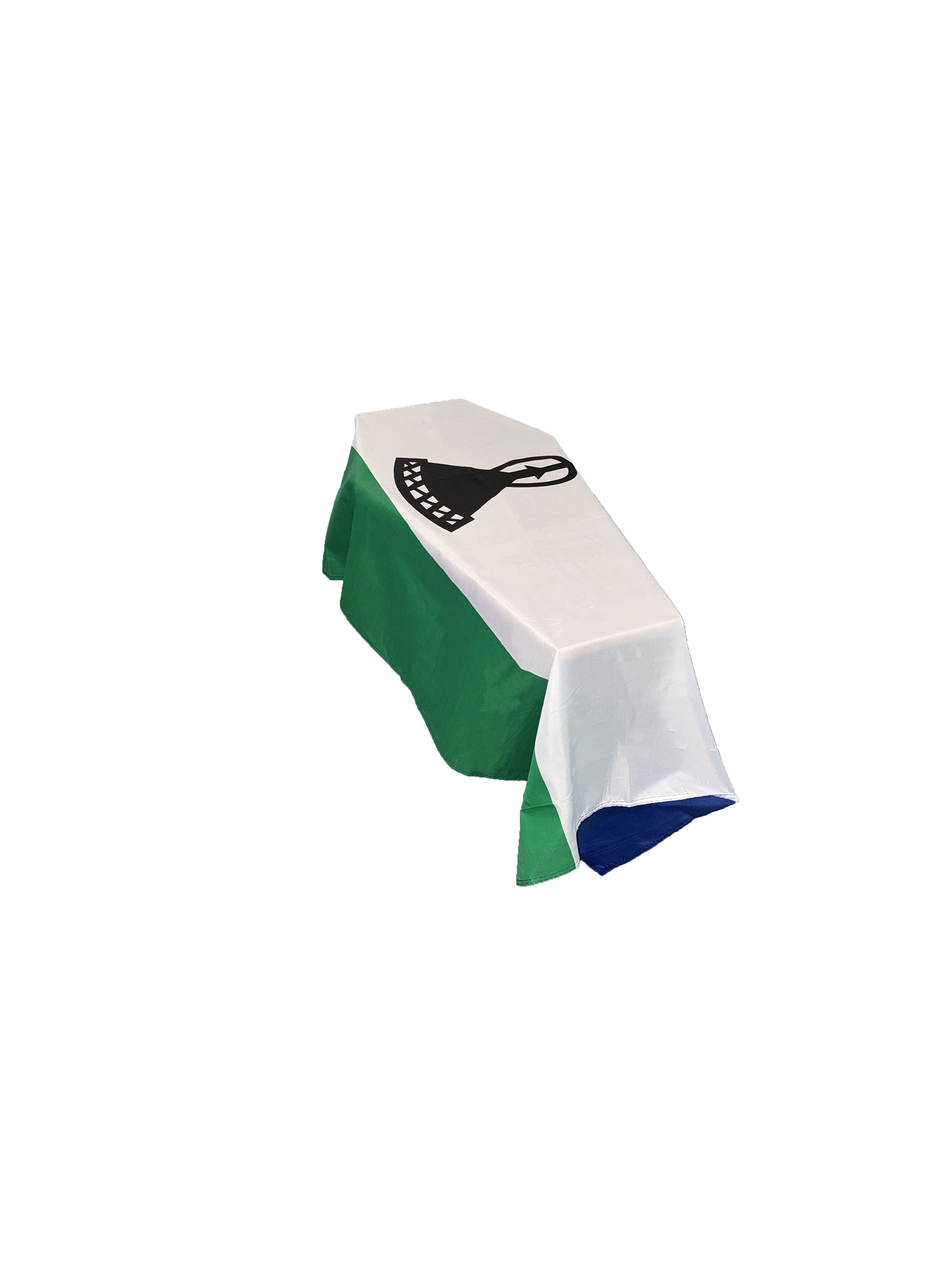 Searching for "coffin drapes," "casket covers," or "Lesotho memorial drapes"? The Lesotho New Coffin Drape Flag offers a lasting tribute to Lesotho's culture, history, and the strength of its people. Available in both woven polyester for an economical option and premium knitted polyester for a refined finish, this drape combines elegance with the profound symbolism of Lesotho's flag. Whether you are honouring a national figure, a beloved family member, or someone with a deep connection to Lesotho, the Lesotho New Coffin Drape Flag ensures a meaningful and memorable tribute.