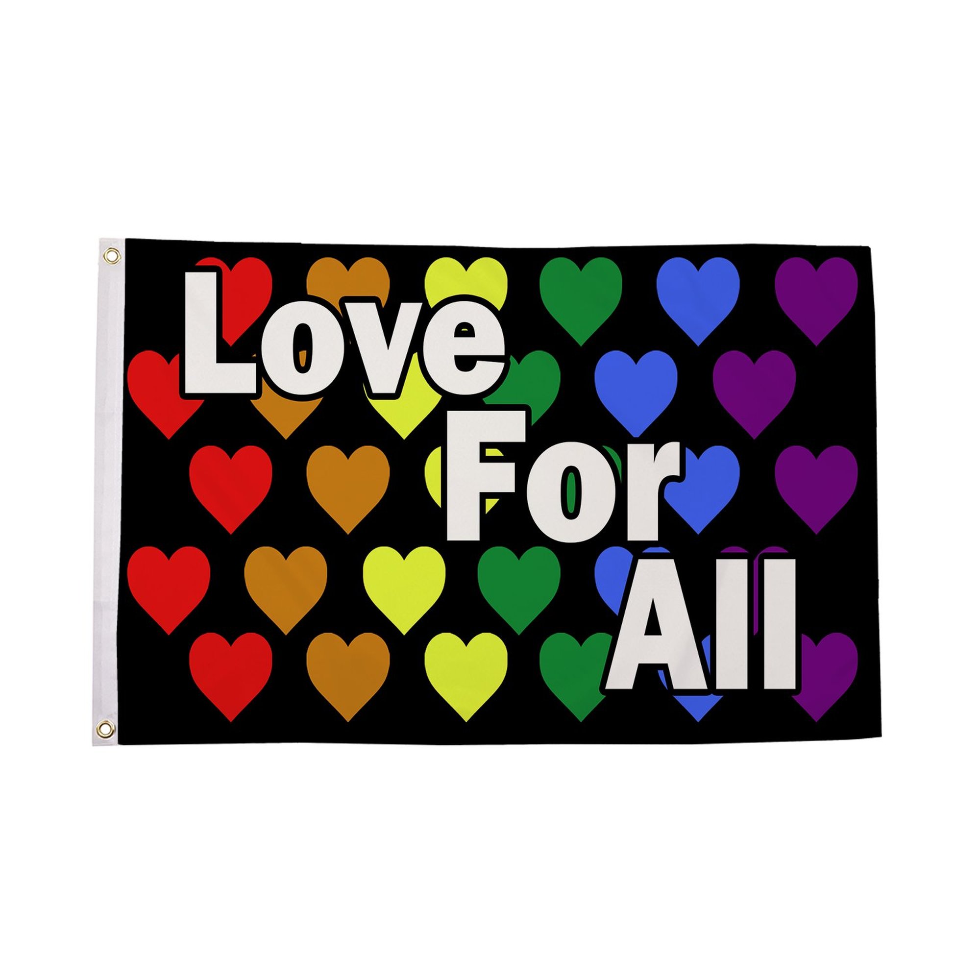 The Love For All Flag is a powerful symbol of unity, compassion, and inclusivity, promoting a message of love and acceptance for all people, regardless of their backgrounds, beliefs, or identities. With vibrant colors and a bold design, the flag represents the universal values of peace, harmony, and respect, making it a timeless emblem for promoting understanding and kindness across the world. The Love For All Flag has become a widely recognized symbol in various movements advocating for human rights, equality, and social justice. Whether displayed during community events, social campaigns, or simply as a symbol in personal spaces, this flag serves as a constant reminder of the importance of love and mutual respect in building a better, more inclusive world. Constructed from high-quality polyester, the flag is designed to last and can be proudly flown outdoors or indoors, retaining its vibrant colors and powerful message for years.