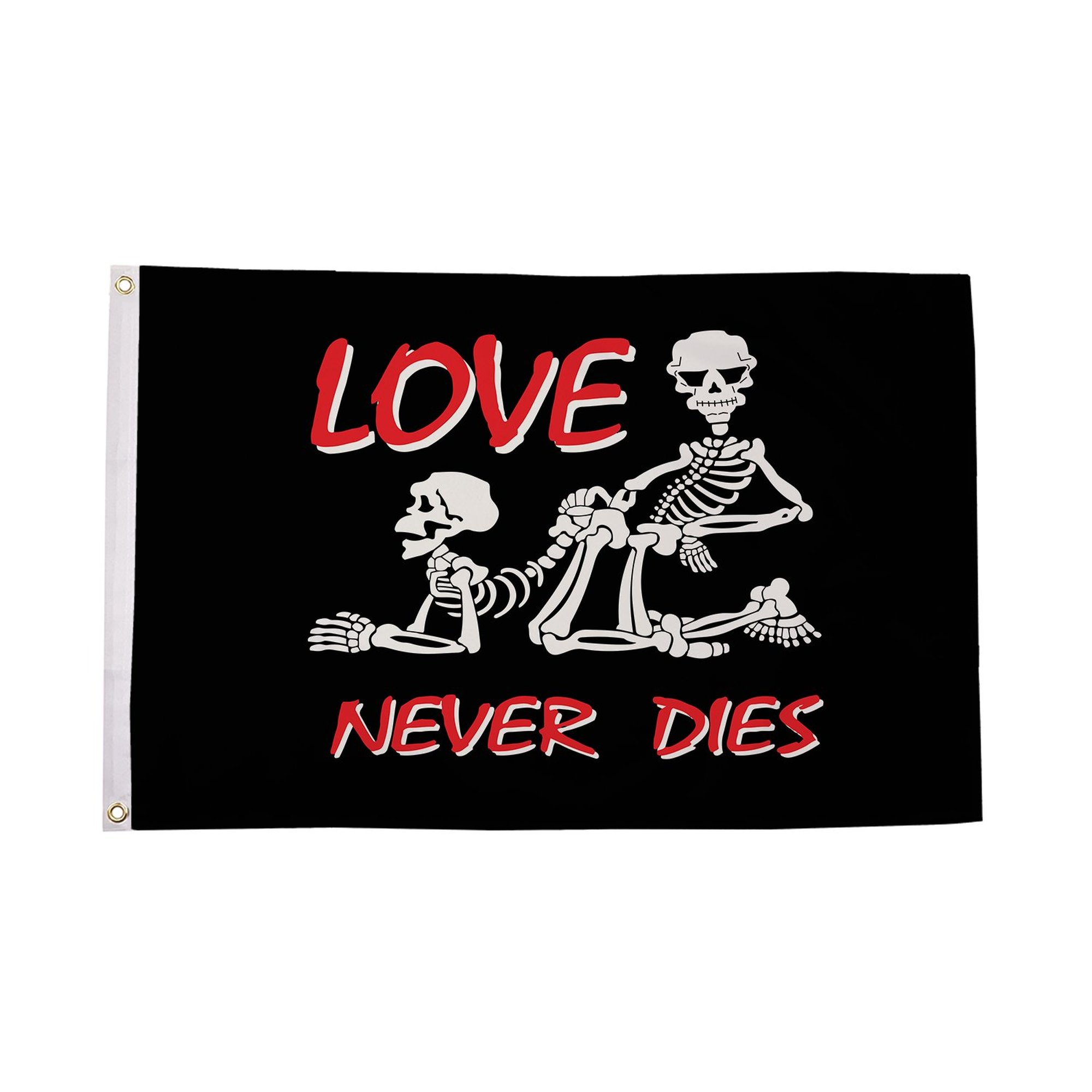 The Love Never Dies Flag carries with it a timeless message of eternal love, making it a symbol of remembrance, devotion, and lasting connection. This flag is inspired by the belief that love does not end with physical separation, but instead lives on in the hearts of those who remain. The phrase "Love Never Dies" serves as a powerful reminder that love continues to endure, creating an everlasting bond that survives even the toughest circumstances. The design is both emotional and inspiring, often featuring symbolic imagery like hearts, doves, or other representations of love and peace. It resonates with those who have lost loved ones, those celebrating the longevity of their relationships, or anyone wishing to express the enduring nature of their affection.