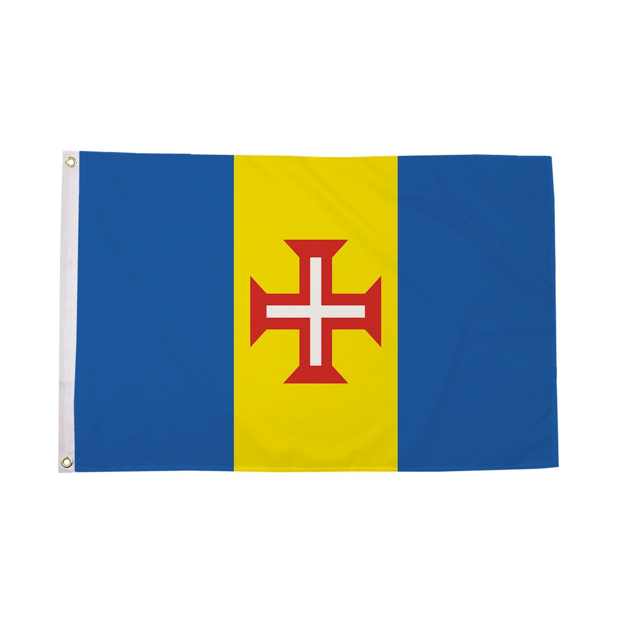 The Madeira Flag is a proud symbol of the autonomous region of Madeira, an archipelago situated in the Atlantic Ocean and part of Portugal. The flag features a rich design of two vertical bands-one blue and one white-with the Madeira cross in the center. The Madeira cross, with its four arms, is a historical symbol of the region, representing the unity and strength of the people of Madeira. The blue color symbolizes the Atlantic Ocean, surrounding the islands, while the white represents the peaceful spirit of Madeira. The Madeira Flag was adopted in 1976, following the region's autonomy within Portugal, and has since become a symbol of Madeira's distinct identity, rich culture, and history. The flag is commonly displayed during national holidays, local festivals, and official events, reflecting the pride of the Madeiran people. Constructed from durable polyester, this flag is designed to withstand various weather conditions, keeping its vibrant colors intact for years.