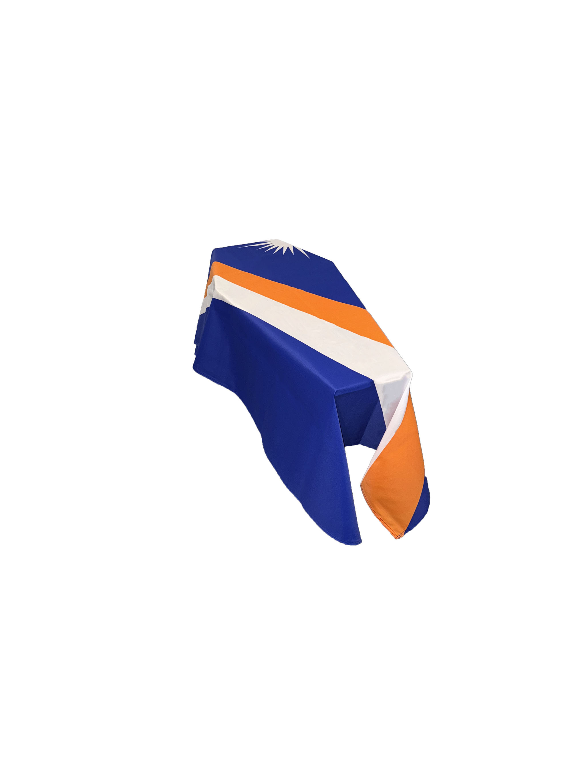 The Marshall Islands Coffin Drape Flag features the blue, orange, and white colours of the Marshall Islands flag. The blue symbolises the Pacific Ocean, the orange represents the sacrifices and strength of the people, and the white reflects peace and unity. The 24-point star signifies the nation's 24 political districts. This flag is ideal for anyone with deep ties to the Marshall Islands or those who cherish its rich cultural heritage. Available in woven polyester for an affordable option or premium knitted polyester for those seeking a more luxurious finish, the Marshall Islands Coffin Drape Flag ensures a respectful and lasting memorial.