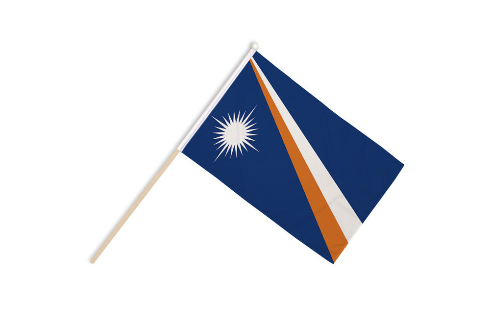 The Marshall Islands Hand Flag proudly displays the national flag of the Marshall Islands, which consists of a blue background with orange and white stripes. The orange and white stripes represent the country's growth and its path toward a prosperous future, while the blue background symbolizes the nation's commitment to peace and unity. The flag is a powerful reminder of the Marshall Islands' sovereignty and its people's resilience.