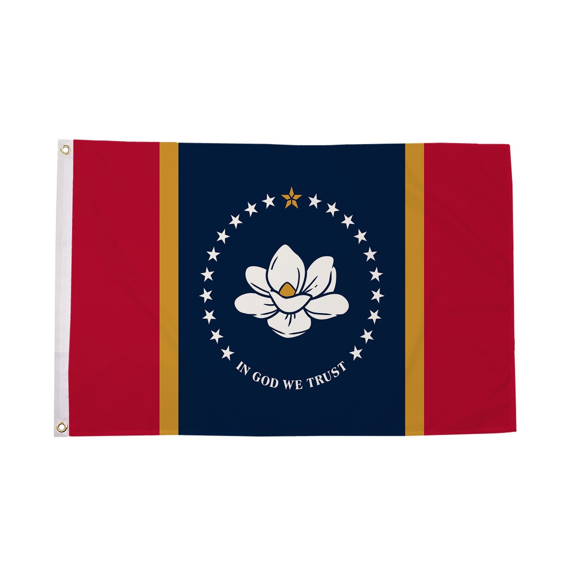 The Mississippi New (2021) Flag was adopted after a historic vote in the Mississippi legislature, marking a new era in the state's identity. The magnolia flower featured in the flag symbolizes beauty, strength, and resilience, traits that Mississippi takes pride in. The flag's design was the result of months of public debate and input from Mississippians who wanted a flag that represented the diversity and inclusiveness of the state. The magnolia, alongside the 20 stars representing Mississippi's entry into the Union, reflects a future-focused identity that recognizes the state's history while moving forward.