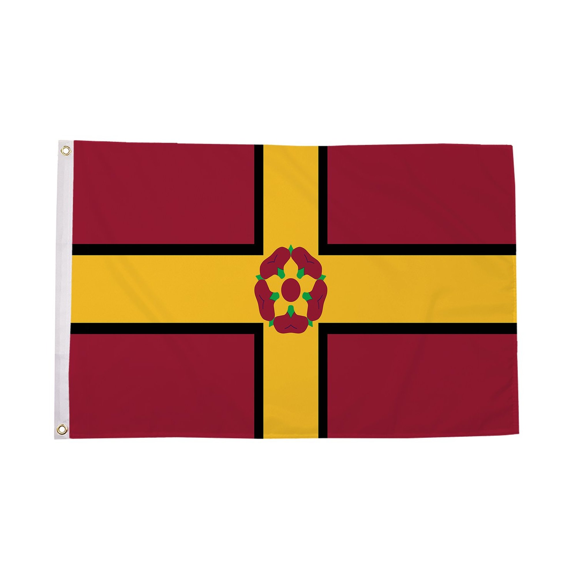 The Northamptonshire (New) Flag was designed to reflect the pride and unity of the people of Northamptonshire. The flag incorporates green and yellow, which symbolize the county's connection to agriculture, its fertile lands, and the historical significance of its farming industry. The central emblem is a stylized version of the county's traditional crest, emphasizing the county's rich heritage and its commitment to sustainability and progress. This flag serves as a modern emblem of the county's cultural identity, linking its past to its future.