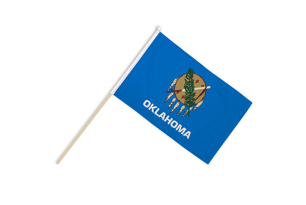The Oklahoma Hand Flag is a proud symbol of the state's rich heritage, cultural diversity, and strong spirit of independence. Featuring the iconic Oklahoma flag, it showcases the state's history with the unique design that includes a blue field, a Native American shield, and seven eagle feathers. The design represents Oklahoma's indigenous roots, its frontier history, and the state's commitment to liberty and strength. The Oklahoma Hand Flag offers an easy way for residents and admirers of the state to display their pride during local celebrations, sporting events, cultural festivals, or public gatherings. Crafted with durable materials, this hand-held flag is built for repeated use, ensuring it remains a vibrant and lasting symbol of Oklahoma's identity.