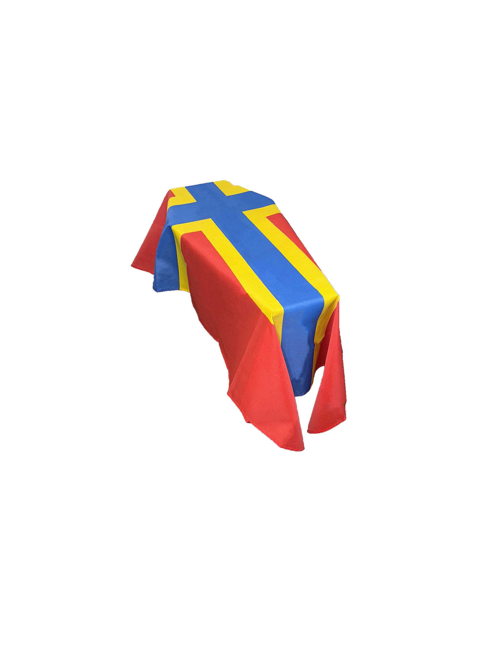 Searching for "coffin drapes," "casket covers," or "Orkney memorial drapes"? The Orkney New Coffin Drape Flag offers a lasting tribute to Orkney's culture, history, and the resilience of its people. Available in both woven polyester for an economical option and premium knitted polyester for a refined finish, this drape combines elegance with the profound symbolism of Orkney's flag. Whether you are honouring a national figure, a beloved family member, or someone with a deep connection to Orkney, the Orkney New Coffin Drape Flag ensures a meaningful and memorable tribute.