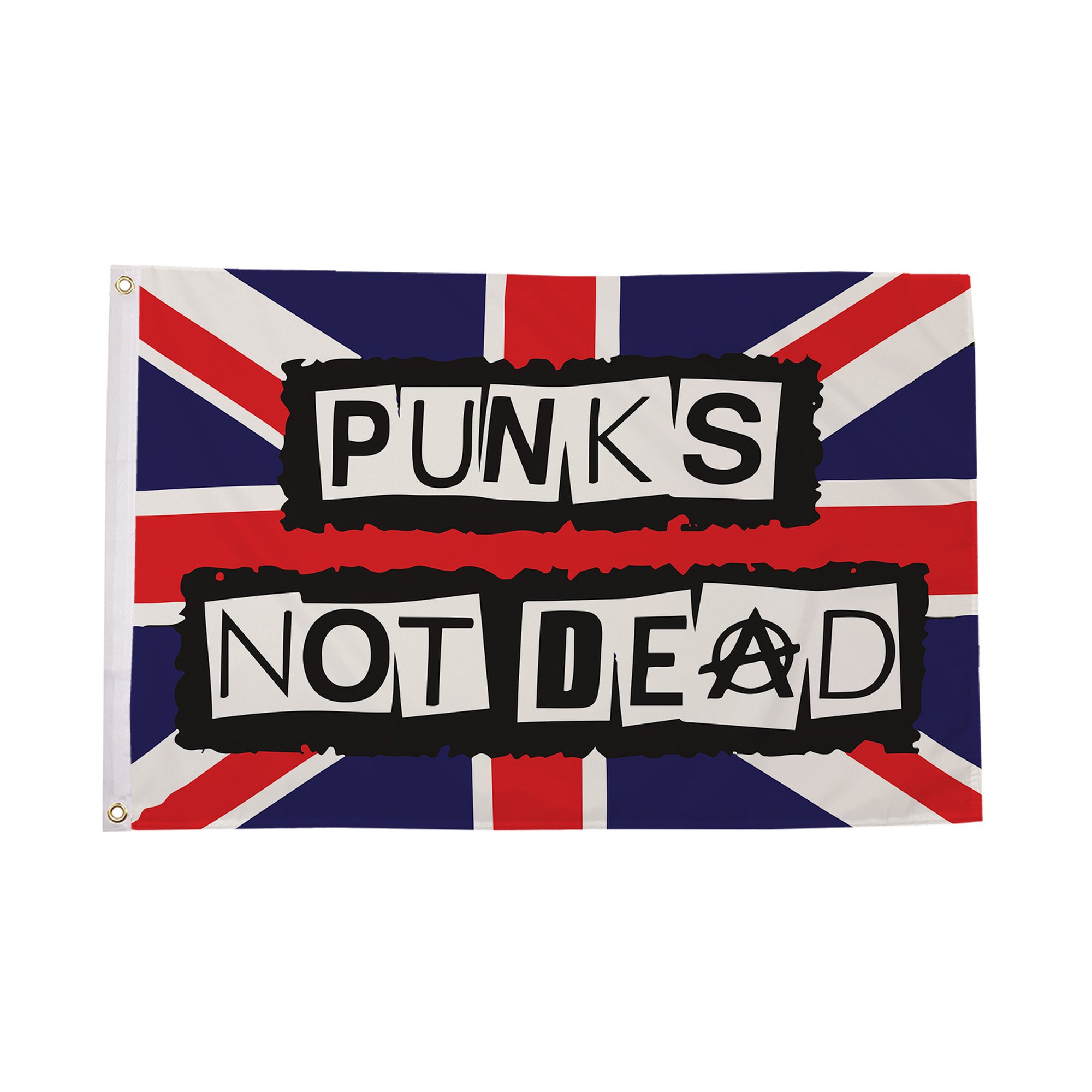 The Punks Not Dead New Flag is a modern update to one of the most iconic symbols of the punk rock movement. This flag retains the rebellious and bold spirit of punk while incorporating fresh design elements to reflect the continuing vibrancy and strength of the punk community. The phrase "Punks Not Dead" has become a rallying cry for punks worldwide, symbolizing the enduring relevance of punk culture in an ever-changing world. The Punks Not Dead New Flag features updated graphics, bright colors, and edgy designs that appeal to the new generation of punk enthusiasts. Whether flown at concerts, rallies, or displayed in personal spaces, this flag serves as a powerful symbol of defiance, non-conformity, and the ongoing punk movement. Made from durable polyester, it's designed to withstand the outdoor elements while keeping its vivid design intact, ensuring its message of rebellion stays strong.