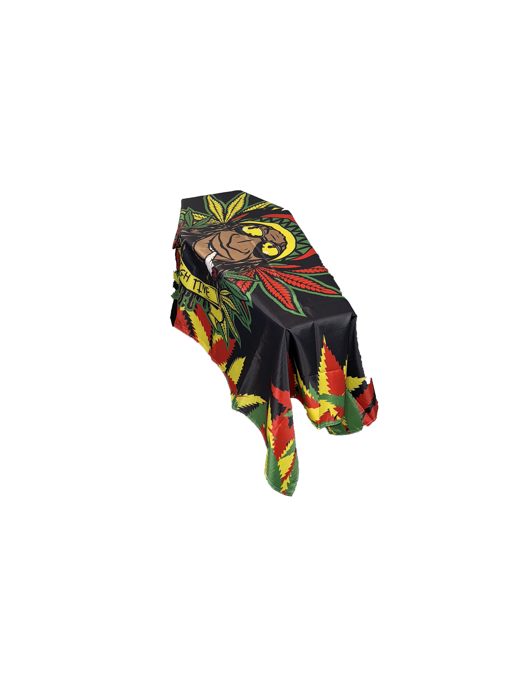 Searching for "coffin drapes," "casket covers," or "Rastafarian memorial drapes"? The Rasta Man Leaves Coffin Drape Flag offers a lasting tribute to the values of Rastafarian culture, music, and freedom. Available in both woven polyester for an economical option and premium knitted polyester for a refined finish, this drape combines elegance with the deep symbolism of Rastafarianism. Whether you are honouring a beloved family member, a musician, or someone who embraced Rastafarian principles, the Rasta Man Leaves Coffin Drape Flag ensures a meaningful and memorable tribute.