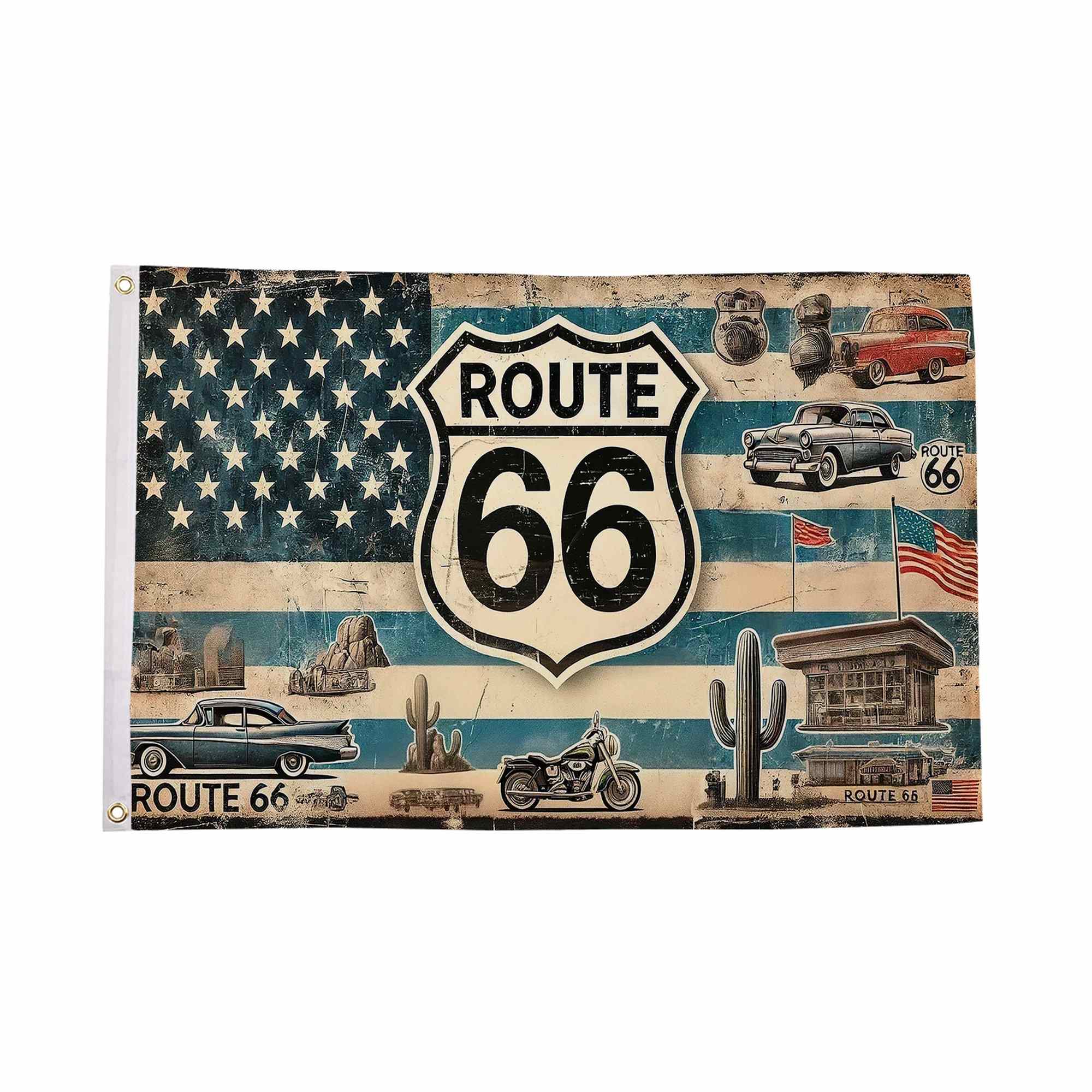 Made from high-quality polyester, the Route 66 Flag is durable enough for outdoor use, while retaining its vivid colors and bold design. Whether you're flying it at a Route 66-themed event, using it for home décor, or adding it to your vintage Americana collection, this flag is designed to last. It will continue to honor the legacy of Route 66, symbolizing the adventure and freedom that the legendary road represents.