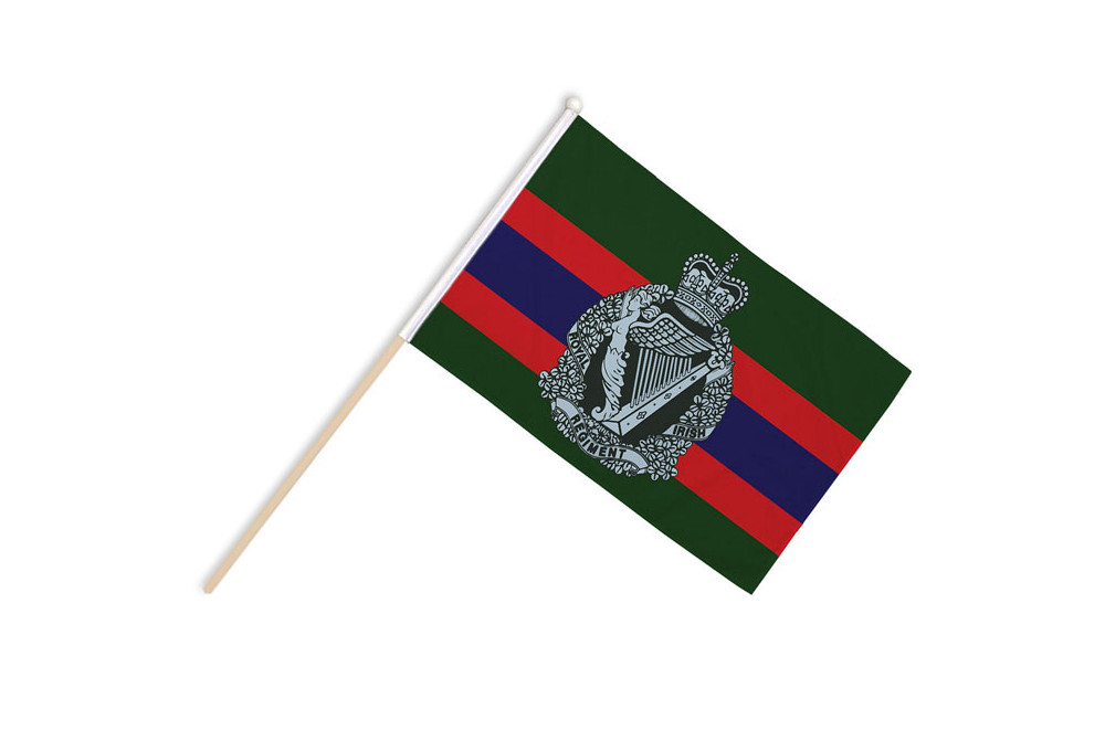 Searching for a flag that represents the pride and legacy of the Royal Irish Regiment? The Royal Irish Regiment Hand Flag is the perfect choice for anyone wishing to express their support for the regiment's history and service. Hand flags, also known as stick flags or hand-held flags, are a great way to engage with others and participate in military events. Made with high-quality materials and printed with vibrant, long-lasting colours, the Royal Irish Regiment Hand Flag will stay bright and bold even after repeated use. Designed with sustainability in mind, it's an eco-friendly way to showcase your military pride for years to come.