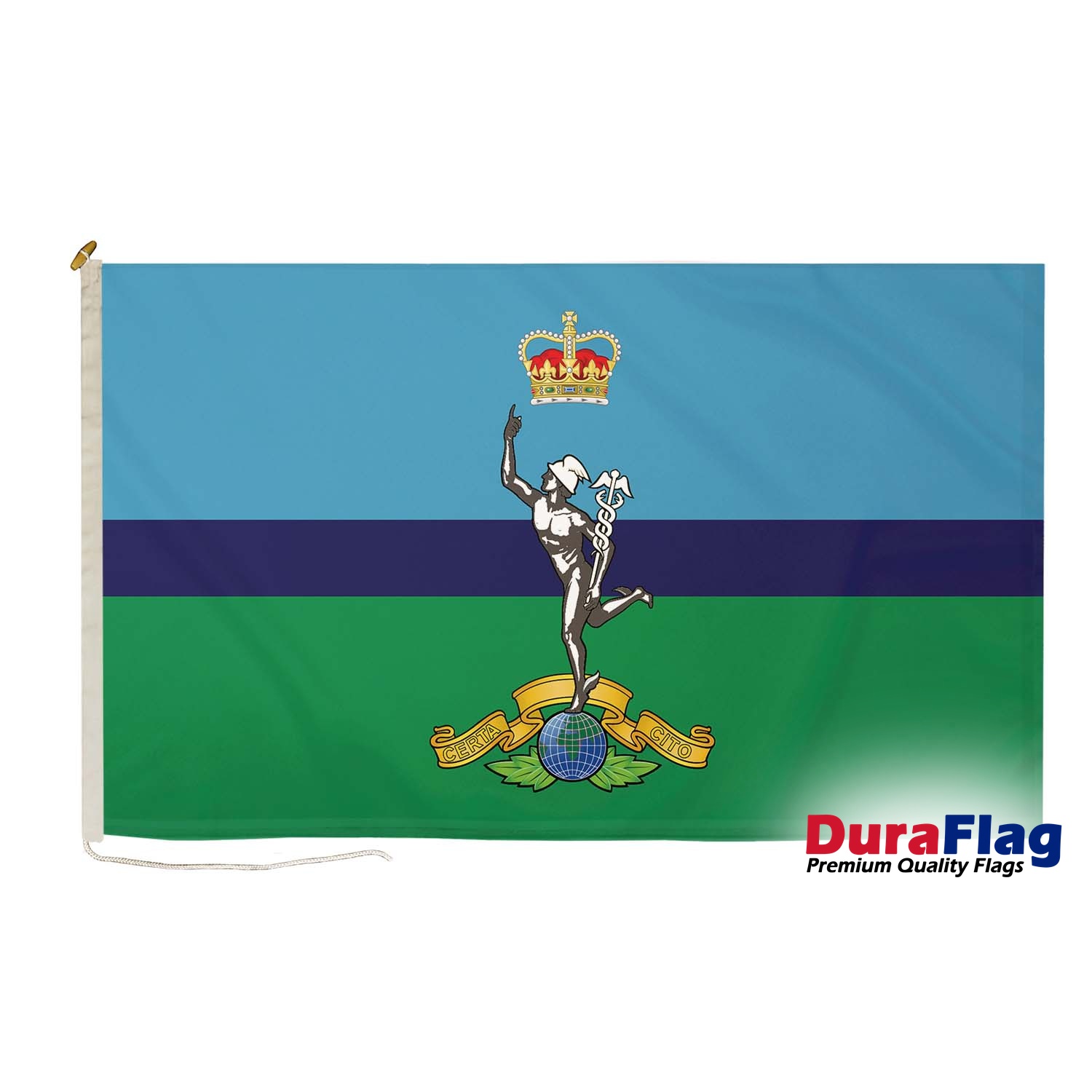 The Royal Signals Corps DuraFlag proudly represents the storied history and vital role of the Royal Corps of Signals, the communication backbone of the British Army. Featuring the iconic colors and symbols of the Royal Signals, this premium flag is crafted from high-quality, durable materials that ensure its resilience and long-lasting vibrancy, even in the harshest conditions. Whether displayed at military events, ceremonial parades, or commemorative occasions, the Royal Signals Corps DuraFlag stands as a tribute to the regiment's contribution to military communications. Designed for both indoor and outdoor use, this heavy-duty flag comes with versatile fittings such as rope and toggles, clips, and D-rings, making it easy to display at any event. Show your pride in the Royal Signals Corps with this professional flag.