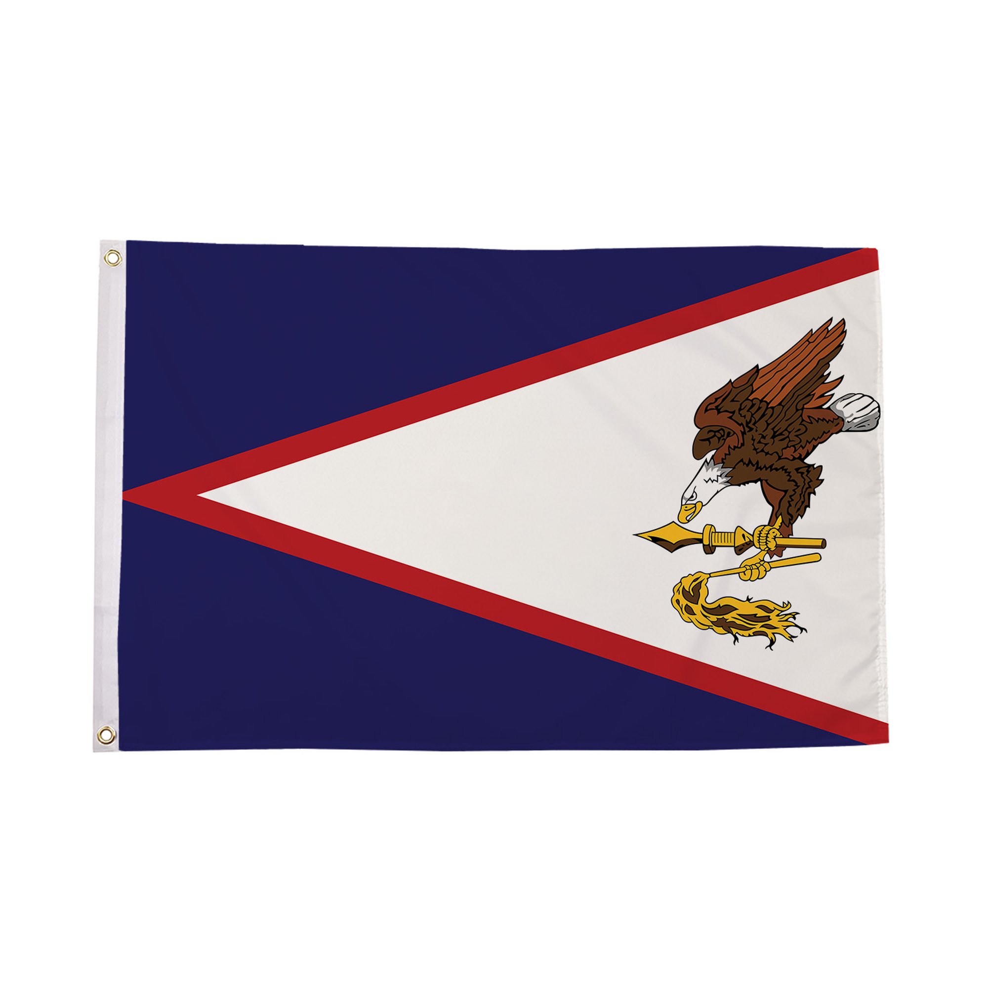 The American Samoa Flag is a proud symbol of the U.S. territory of American Samoa, located in the South Pacific. The flag features a rich design with vibrant colors that represent the region's natural beauty, culture, and connection to the United States. The flag's blue field represents the ocean and the sky, while the red, white, and blue of the diagonal stripes symbolize the island's relationship with the U.S. The American Samoa flag also includes a prominent eagle holding a staff, representing the country's strength and independence within the United States. Made from durable polyester, the American Samoa Flag is perfect for public events, national holidays, and displaying the pride of American Samoa at any occasion.